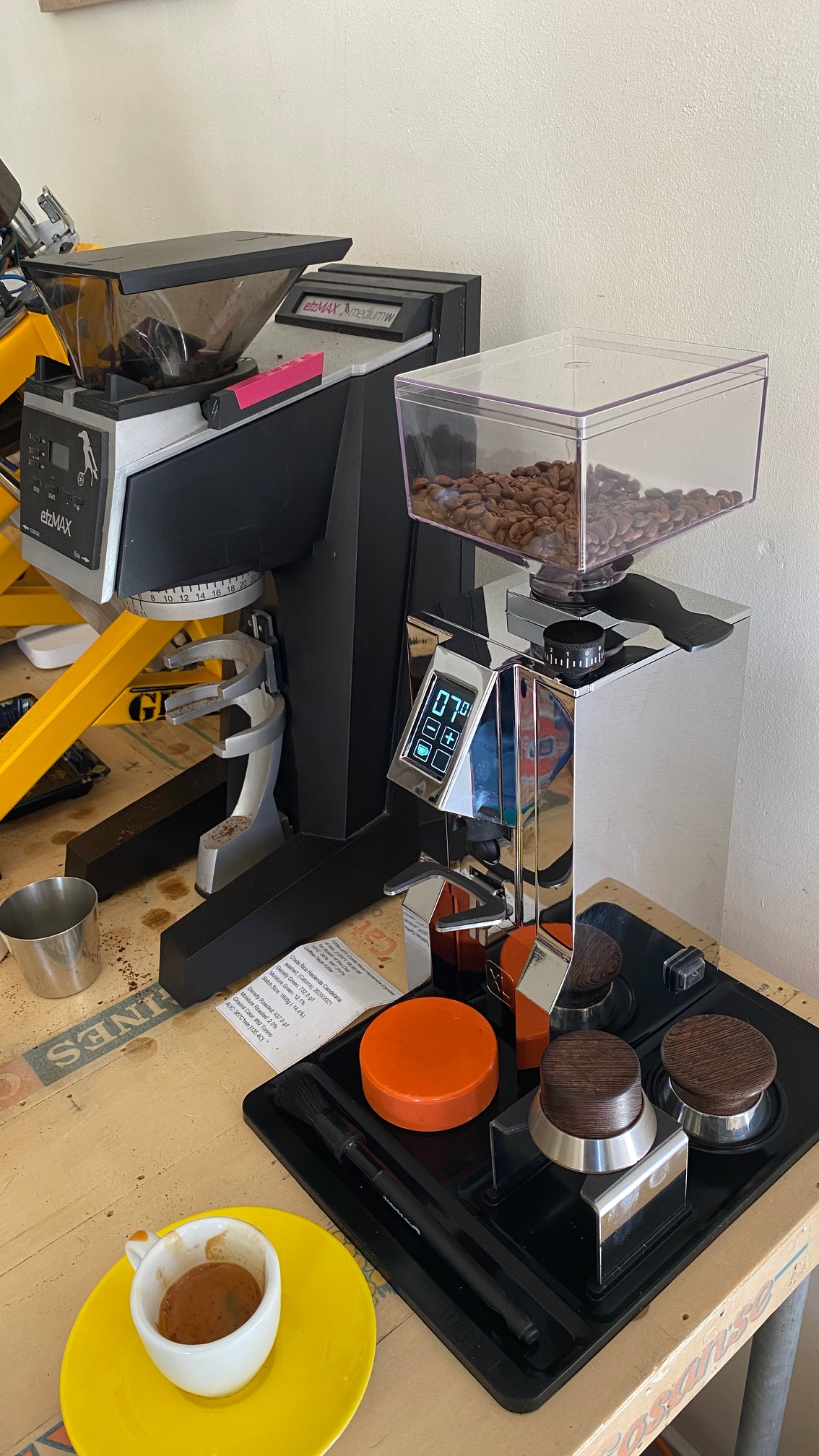 17Hier de hele mooie in huis gefabriceerde "diamond inside" maalschijven van de Eureka mignon XL. De afwerking is echt subliem en de molen is SNEL! Met 17gr in 6seconden zelfs twee keer zo snel als de gewone mignon. Mogelijk zijn de schijven dus niet alleen groter, maar ook agressiever geslepen. Ik wil ze tzt nog even side by side vergelijken met die van de specialita.