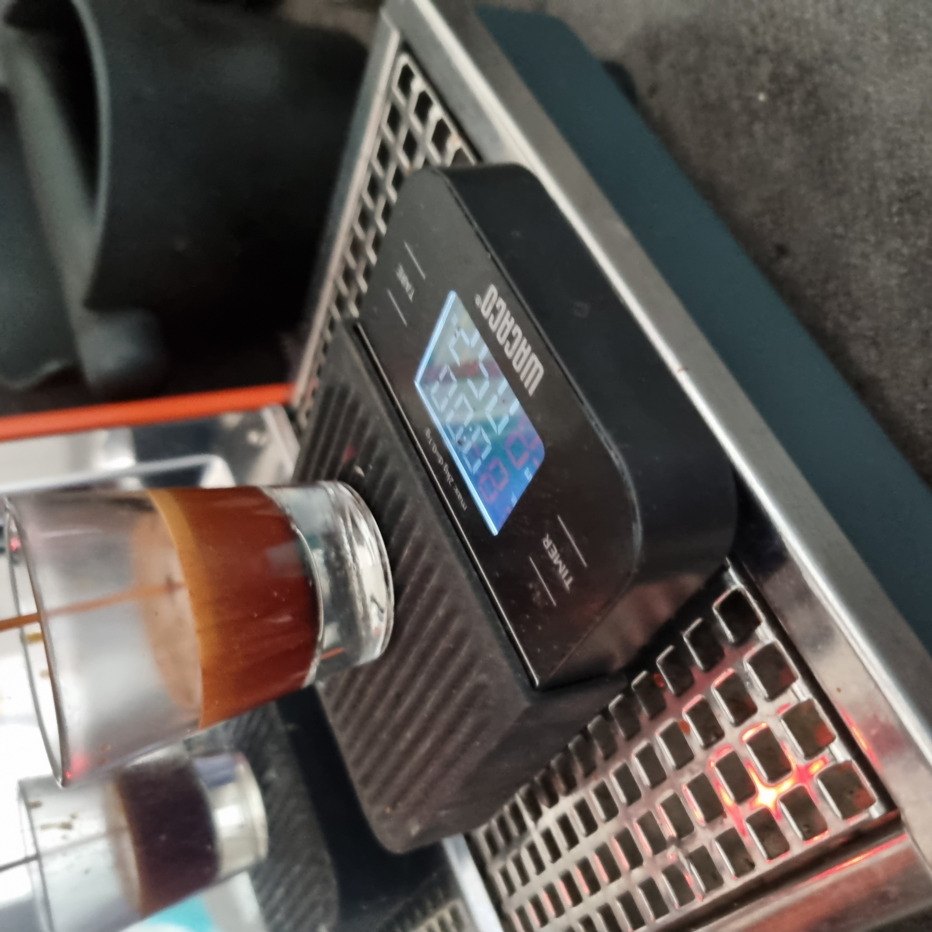 Een uitstekend 18g bakje gebruiken, ongeveer 18g erin, ongeveer 30-36g espresso eruit in ongeveer 30-35seconden, klaar