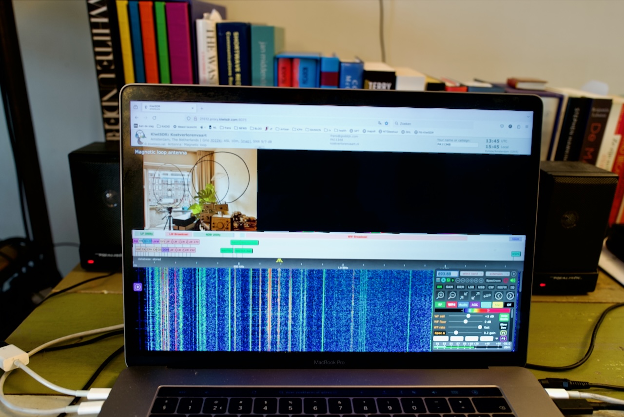 Een laptop-scherm waar de ontvanger mee wordt gebruikt (hier afgestemd op 198kHz, lange golf, waar de BBC nog uitzendt (ze gaan ermee ophouden):