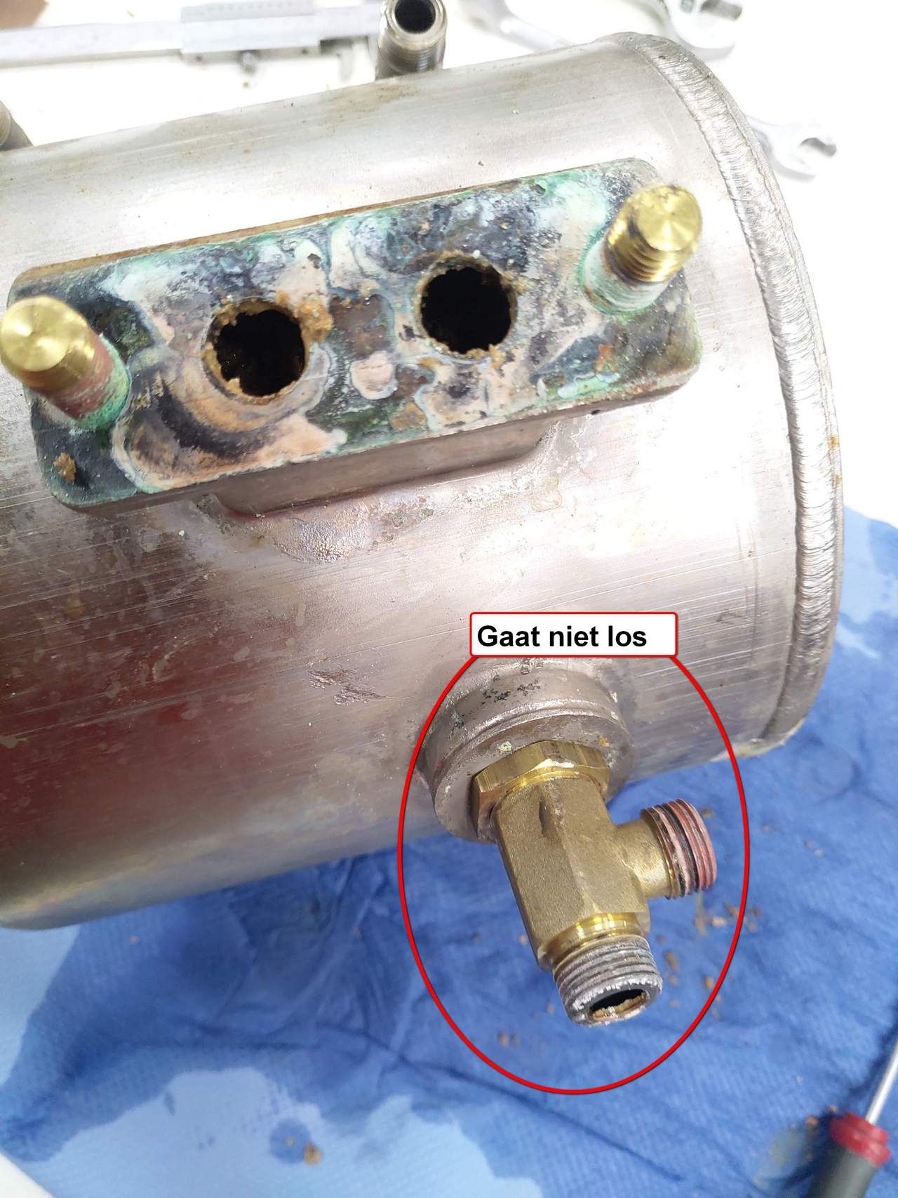 De lekkage en het nieuwe kniestuk ga ik met zilver hardsolderen.