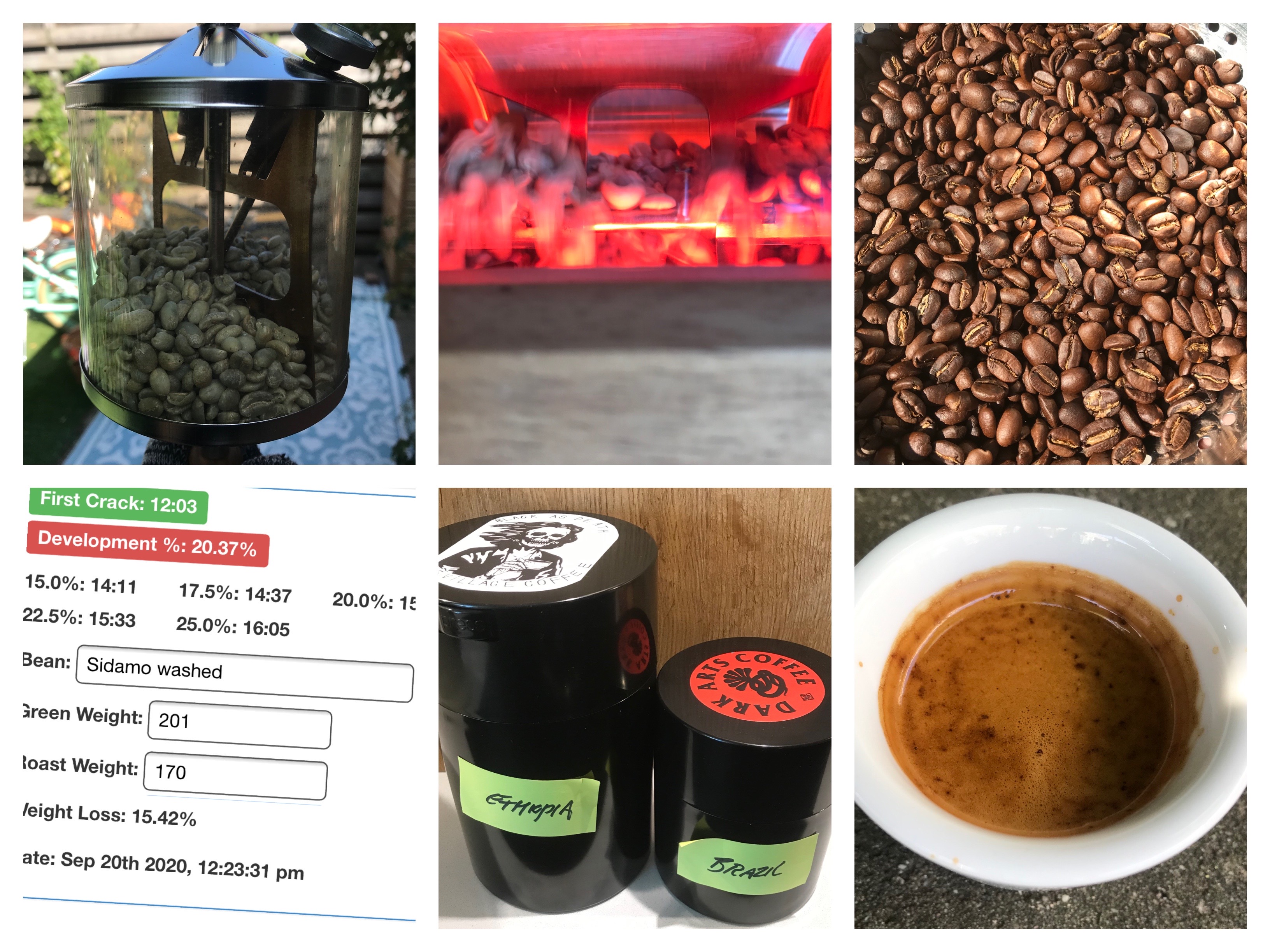 Plaatjes van vanochtend. (Espresso shot is met bonen die ik donderdag heb gebrand).