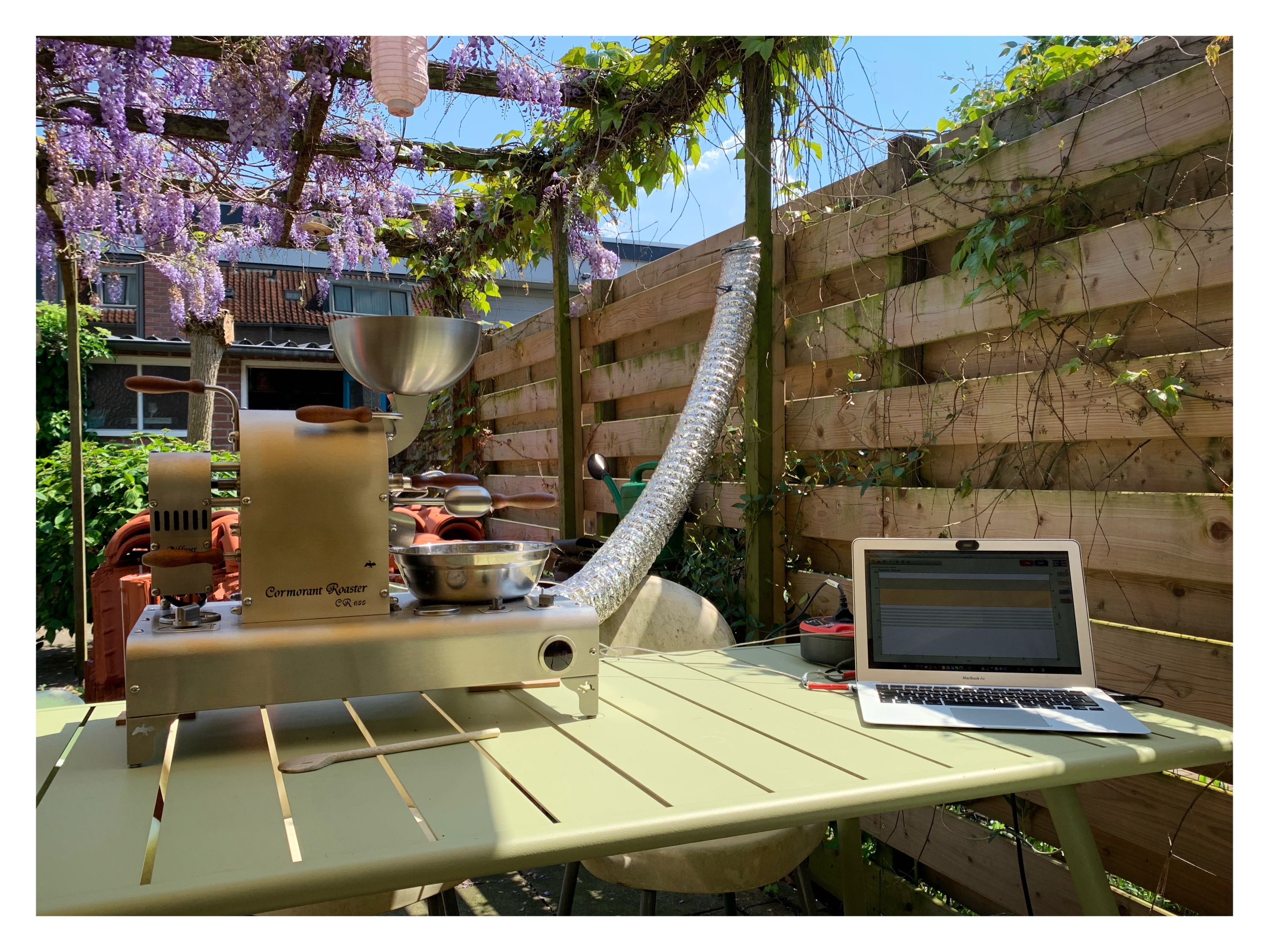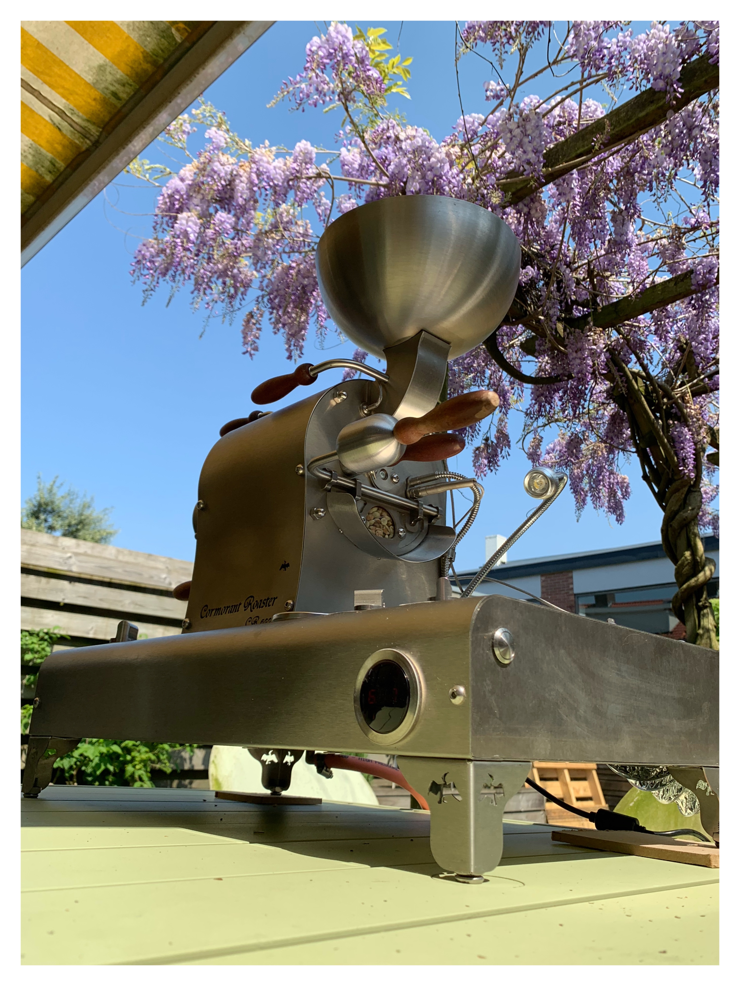 23Vandaag voor het eerst aan de slag gegaan met mijn Cormorant. Wat een vet apparaat. Eerst een aantal batches met "test koffie" om een beetje een idee te krijgen wat ik aan het doen was. Op basis van die ervaringen een klein beetje feeling krijgen van wat ik moet doen het de hoeveelheid gas en lucht.