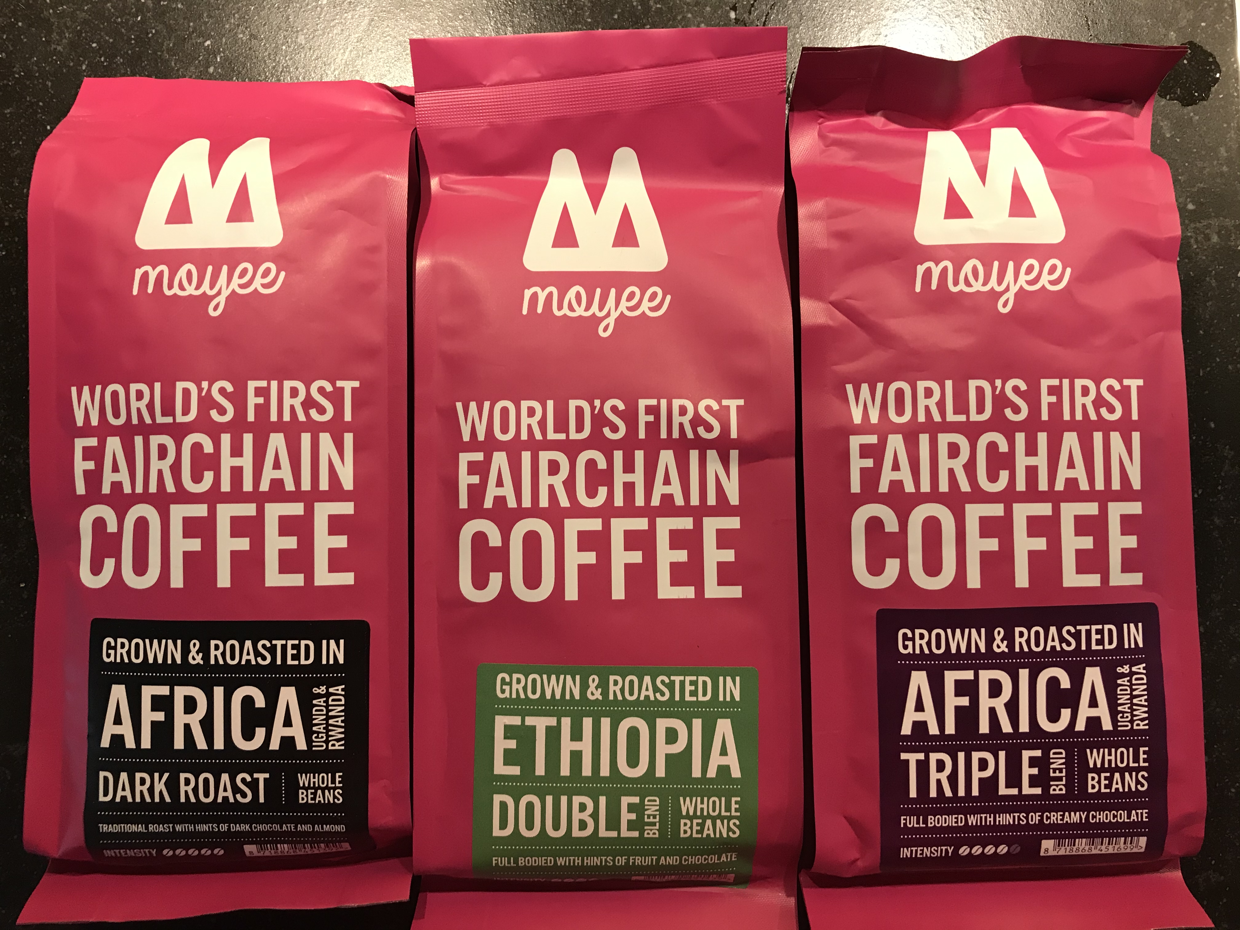 In het pakket worden 3 verschillende brandingen aangeboden: Double, Tripple en Dark Roast. Daarnaast biedt Moyee nog de Microlot en Single op hun website aan.