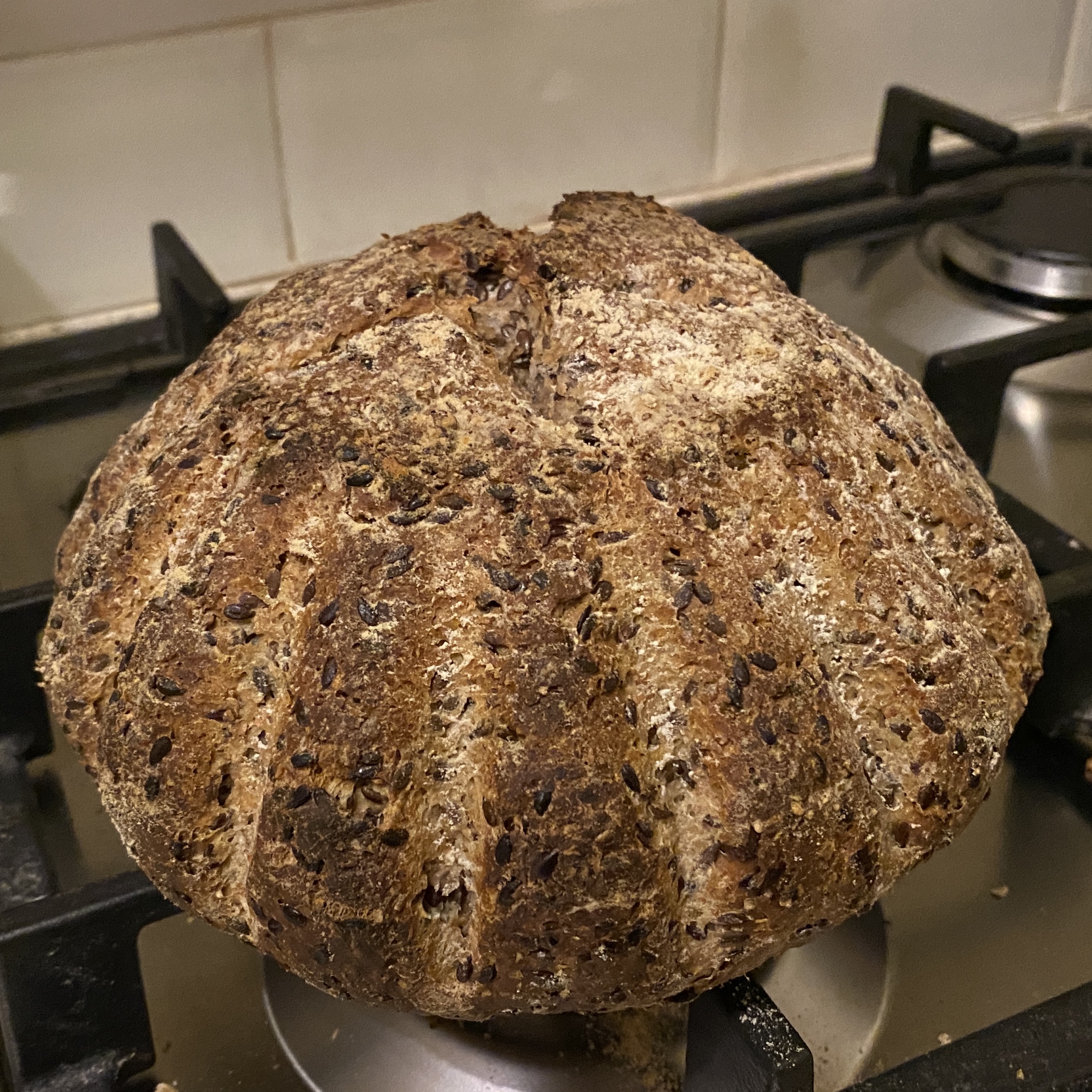 Ok.Behoorlijk vezelrijk dus.fransg schreef: ma 27 jan 2020, 12:46Ik begin met 50g desem van volkoren roggemeel (zelf gemalen), doe daar 100g zelfgemalen rogge bij en 100g water, weeg 375g meel af wat meestal bestaat uit 100g bloem uit de winkel en 275g tarwekorrels zelf gemalen (ditmaal maakte ik een pak volkorenmeel op), plus 220g water, 9g zout, 100g zaden (ditmaal lijnenzaden) en 30g olij.