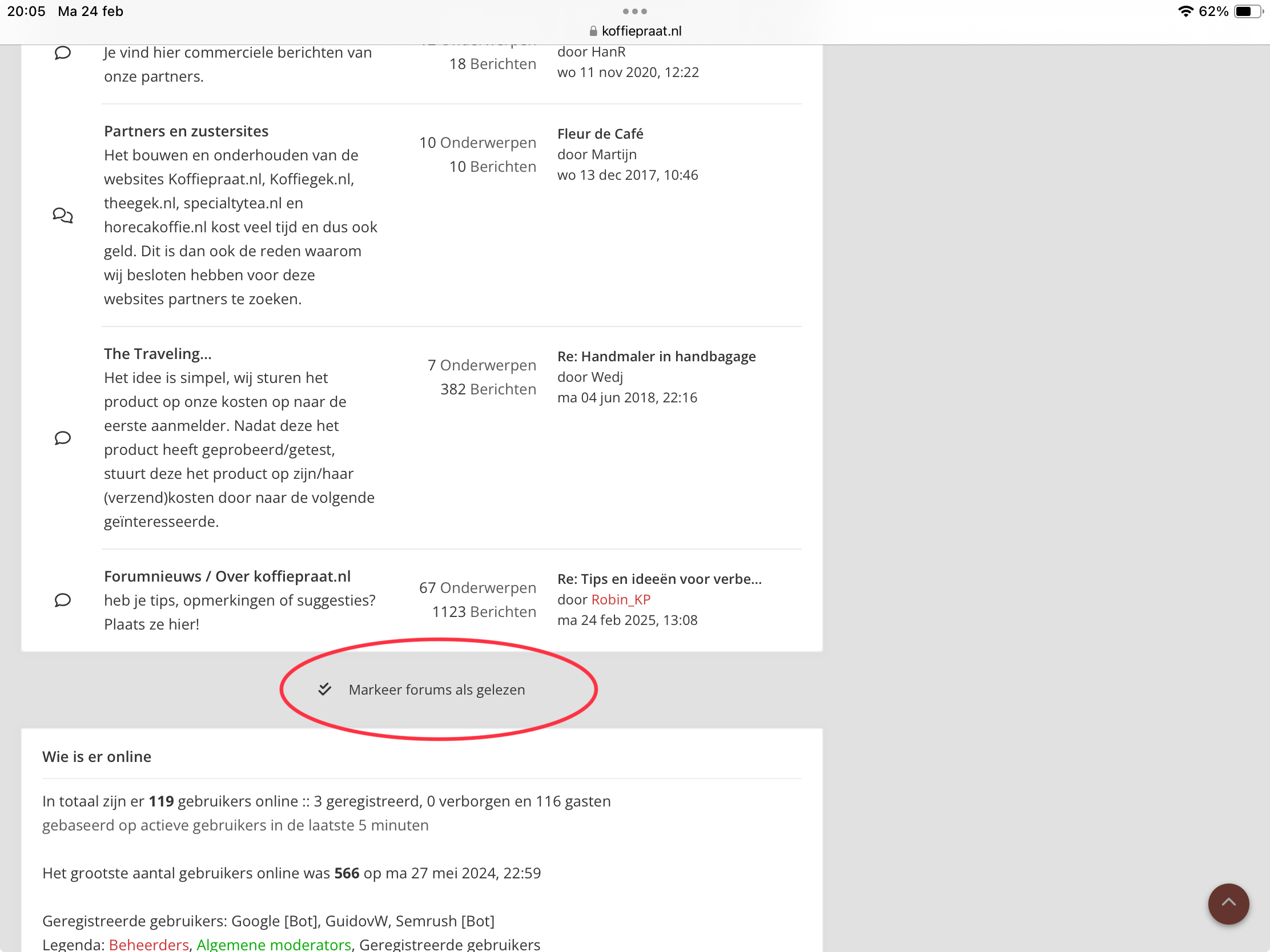 Kan de knop ‘markeer forums als gelezen’ bovenaan de pagina geplaatst worden?