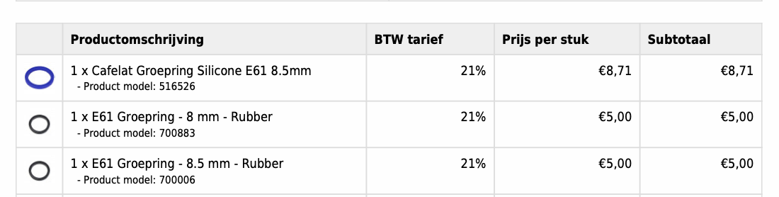 Als je je portafilter naar je gevoel wel erg ver naar rechts moet trekken zou je dus ook eens een nieuwe ring kunnen proberen. Gewoon die van de E61 bestellen.