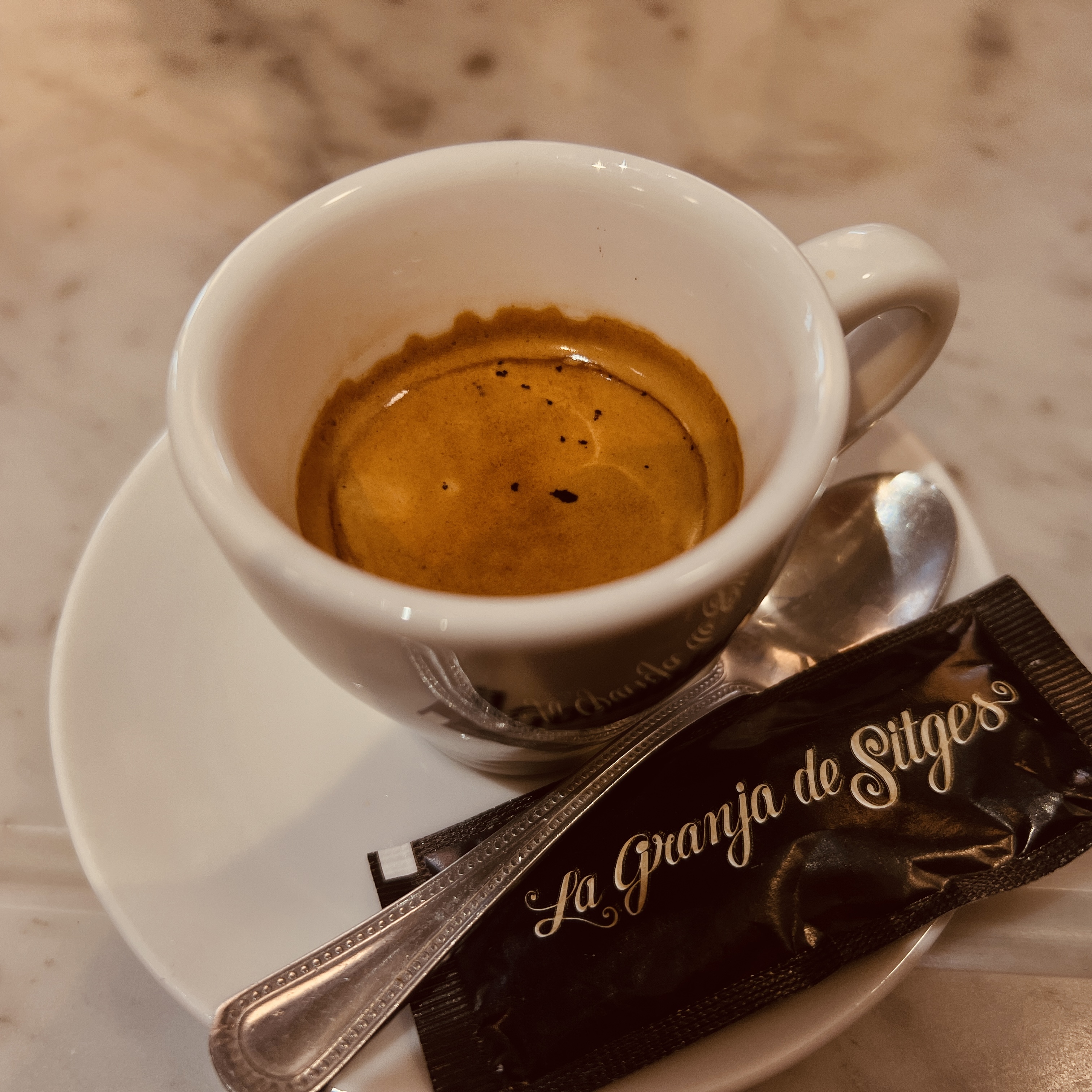 De espresso is er shit maar met suiker wonderwel lekker en oppeppend.