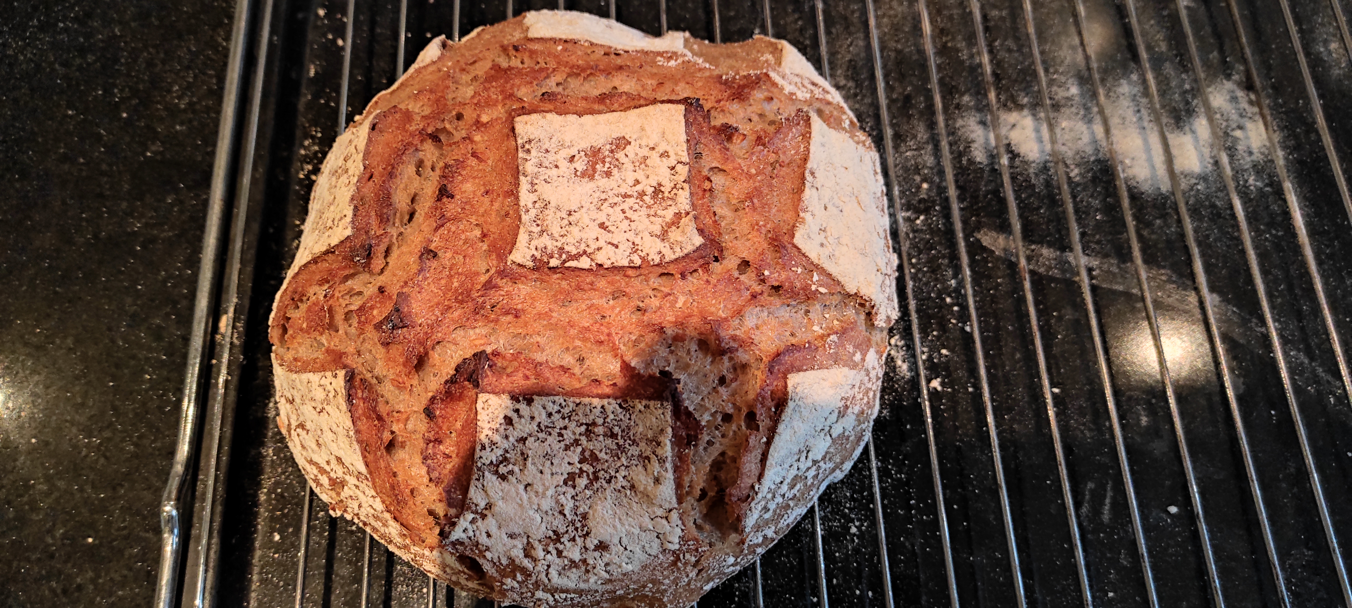 Jullie hebben me "aangestoken". Afgelopen 2 weken heb ik een mooie moederdesem gemaakt. En gisteren mijn eerste brood gebakken, aan de hand van een recept op https://redzuurdesem.be/ , een frans boerenbrood.