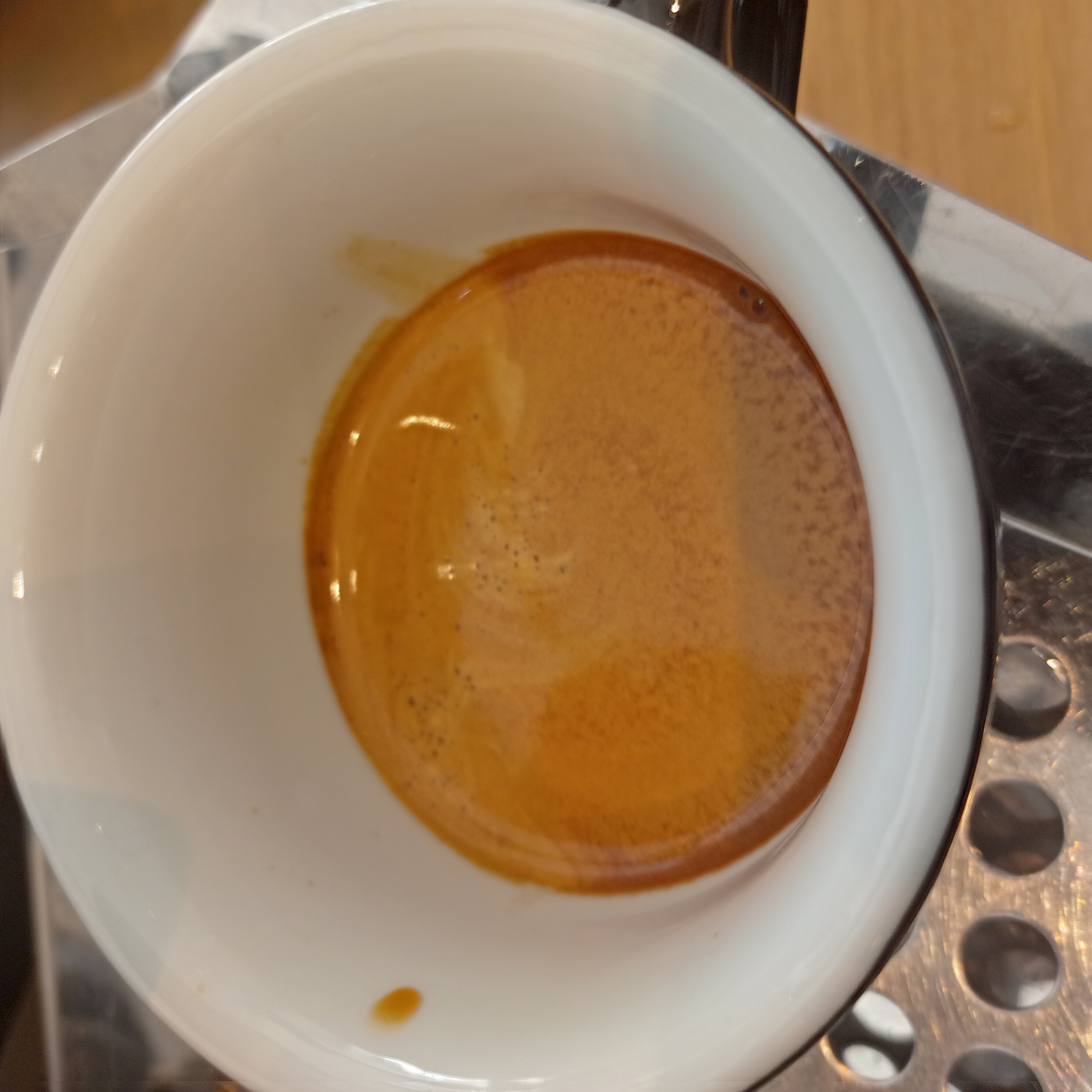 Als ik zoiets op de Londinium of de Rocket probeer doe ik dat door het kopje eerst hoog te houden, vlakbij de uitstroom en dan steeds lager en op die manier een 'web' met gaatjes trekken van de dikke donkere plak.