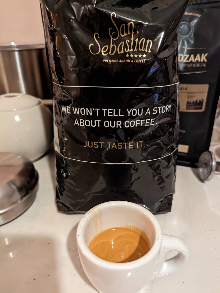 eigenlijk n vrij standaard boon, tikkie fruitig, stropig, licht hintje chocolade... niet heel spannend