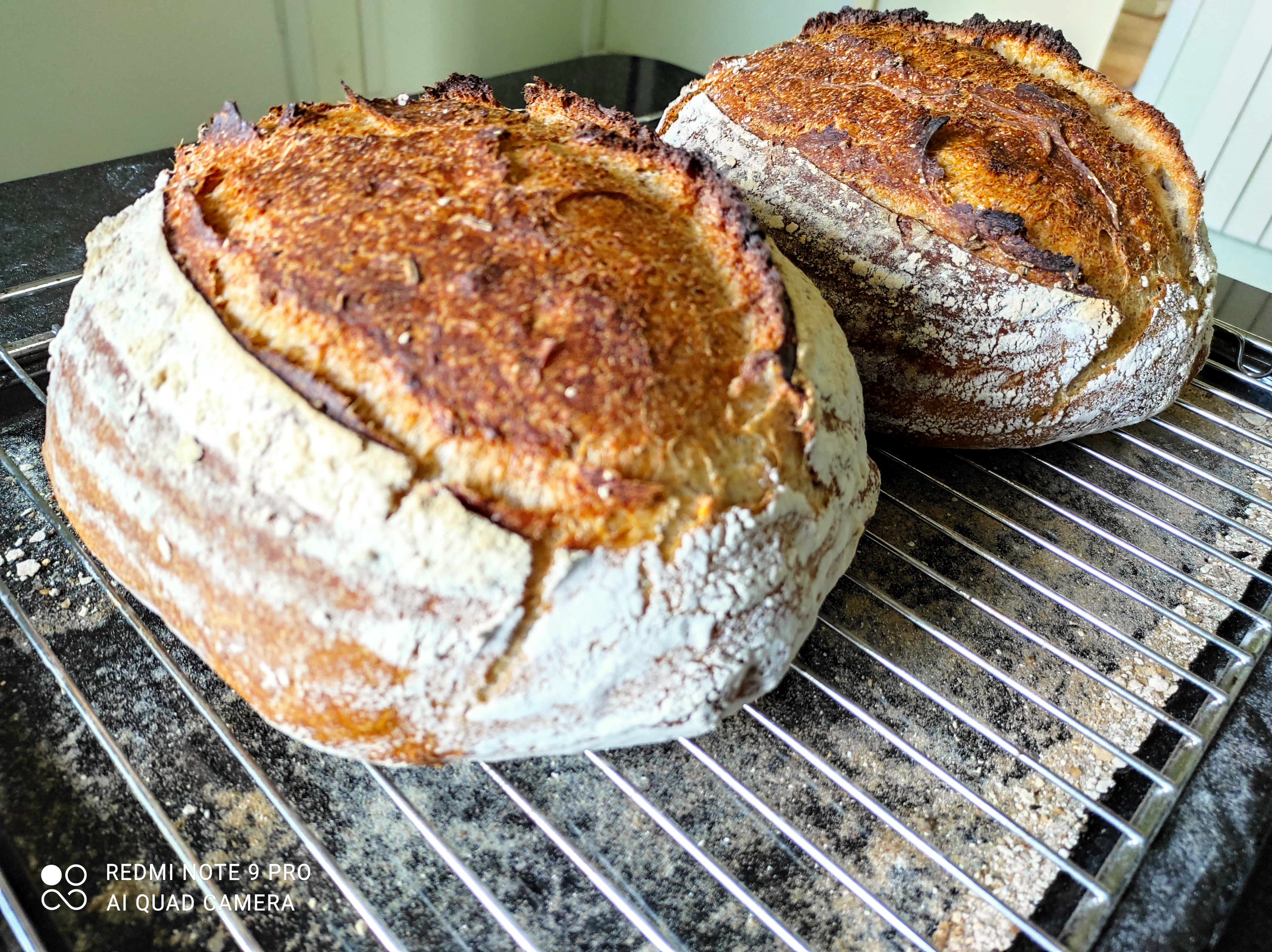 gilleko B. schreef:OEF, wederom dank! Ik heb uiteindelijk er nog een deel tarwe doorheen geflikkerd, baalde van het deeg en heb er een, gefrustreerd, pijp van gedraaid. Tis een roggedrol geworden. Koelt nu af, ruikt zuur. Dadelijk,.thrillseeker als ik ben, een hap nemen.
