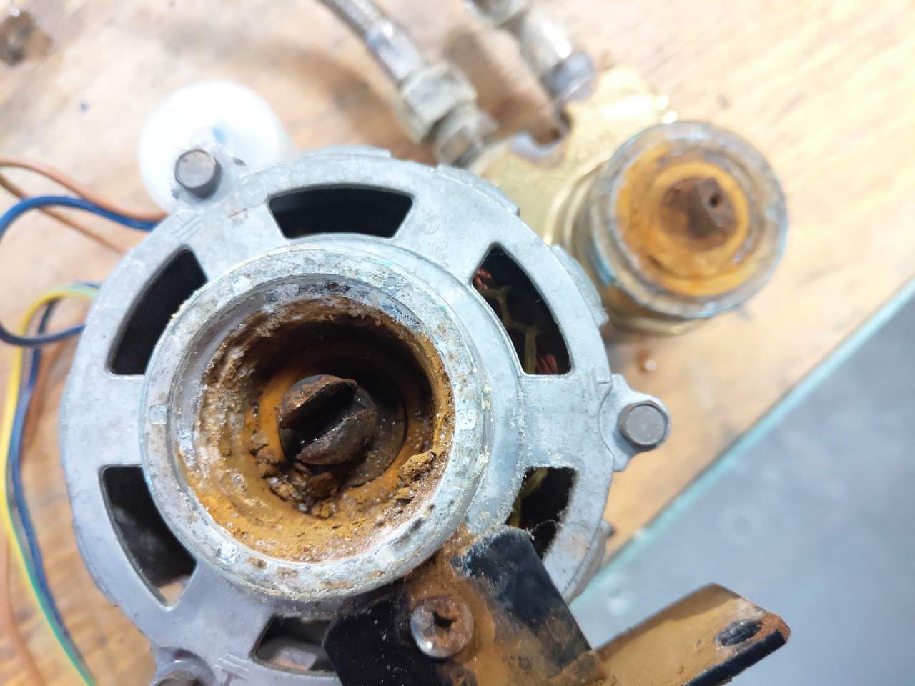 Ondertussen de pomp motor gedemonteerd, er was een lager zwaar aangetast door de lekkage.