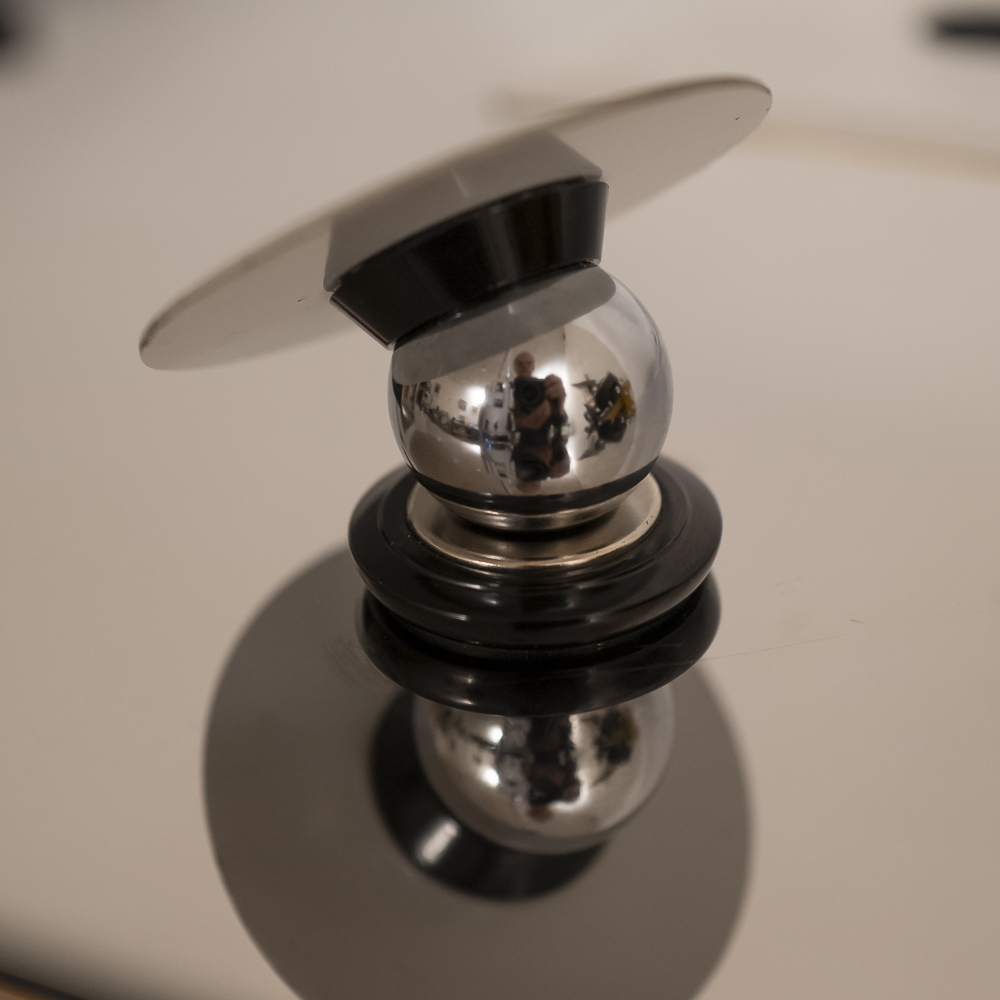 Wat ik denk te zien is balhoofd met een stokje eraan. Die heb ik hier ook liggen in verschillende versies maar ik vond die niet vrij genoeg bewegen. Die kantelde net niet scherp genoeg om goed zicht te geven vanuit de positie als je espresso zet.