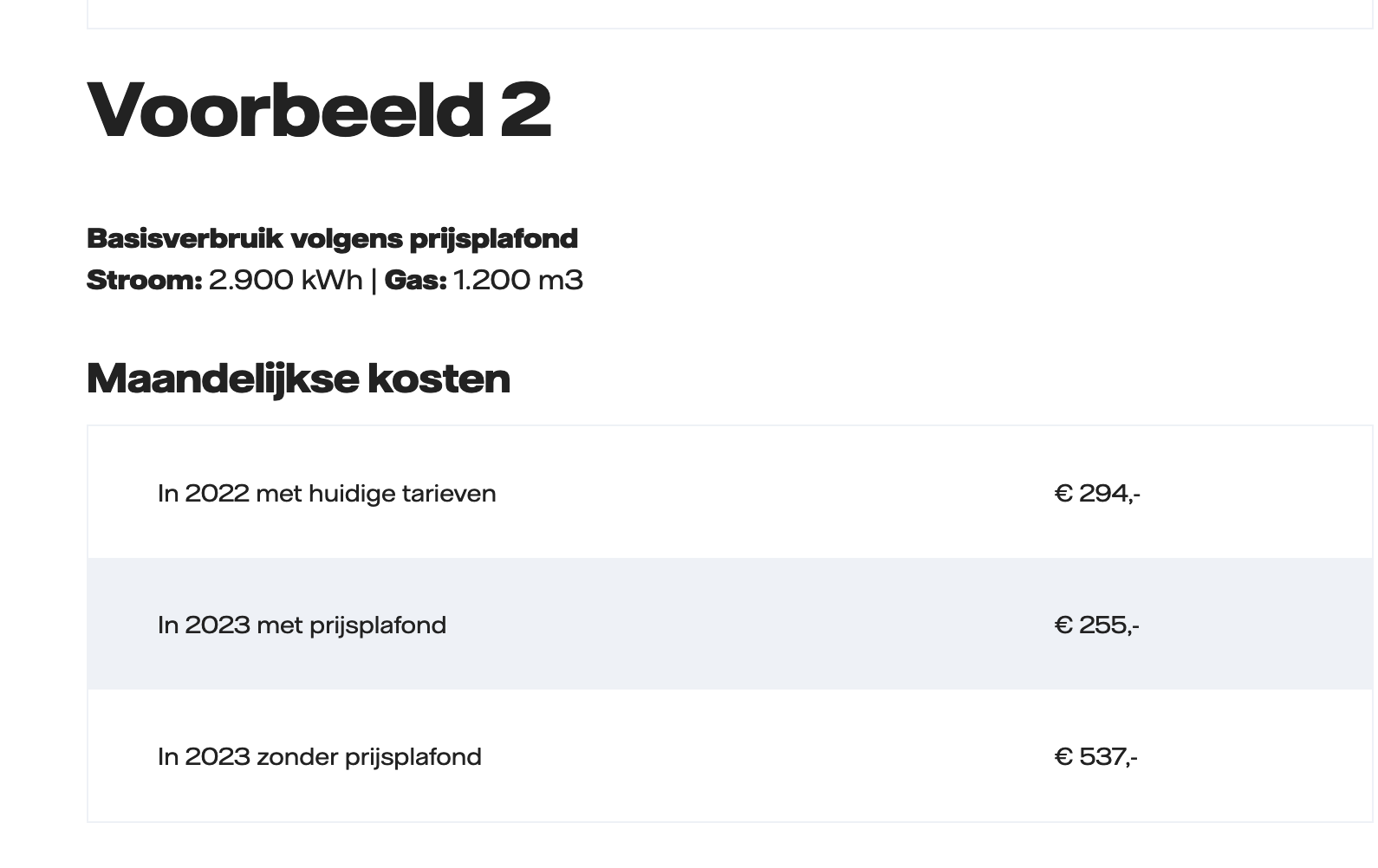 De prijzen die daarbij staan zijn wel echt exorbitant hoog, maar daar zou het prijsplafond per 1 januari een flinke hap uit moeten nemen. Het lijkt me niet dat dat je boven de €400 uit mag komen per maand, maar een groot deel van die 6.000 kWh ligt boven het prijsplafond dus daar valt je besparing te halen.