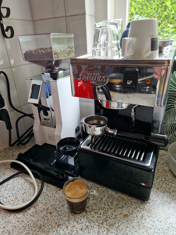 Leuk! Grover malen heeft te maken met dat je nu verse koffie hebt. Beste wat er is.Hans86 schreef:Sinds kort een upgrade van mijn setup door mijn handmatige maler in te ruilen door een elektrisch aangedreven modelTevens begin juli de koffie van de maand bij het Hoofdkwartier besteld en deze afgelopen zondag voor het eerst in de maler gegooid. Maler moest veel groffer dan bij de koffie van koffievoordeel en gaf na wat instellen een mooie fruitige koffie welke best een lichtere kleur heeft dan iets wat donker gebrande koffie van koffievoordeel. Wel leuk om eens wat anders te drinken met meer smaaktonen er in