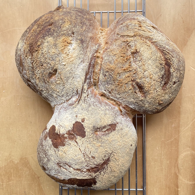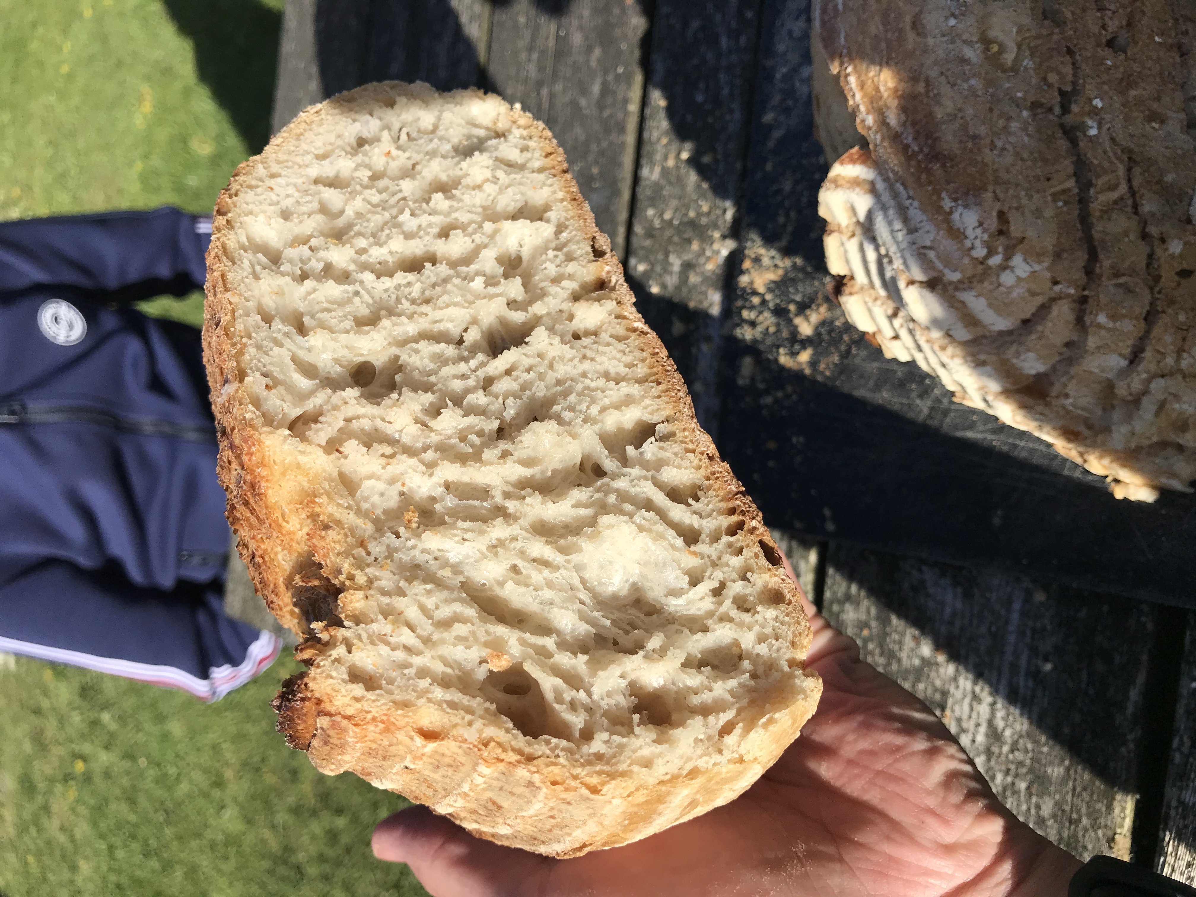 Hier op Texel een lekker zuurdesembroodje gehaald bij de lokale koffiebrander/zaak...die kunnen er ook echt wel wat van! Luchtig en zacht en volgens hun website zonder gist alleen desem dus...momentje van genieten
