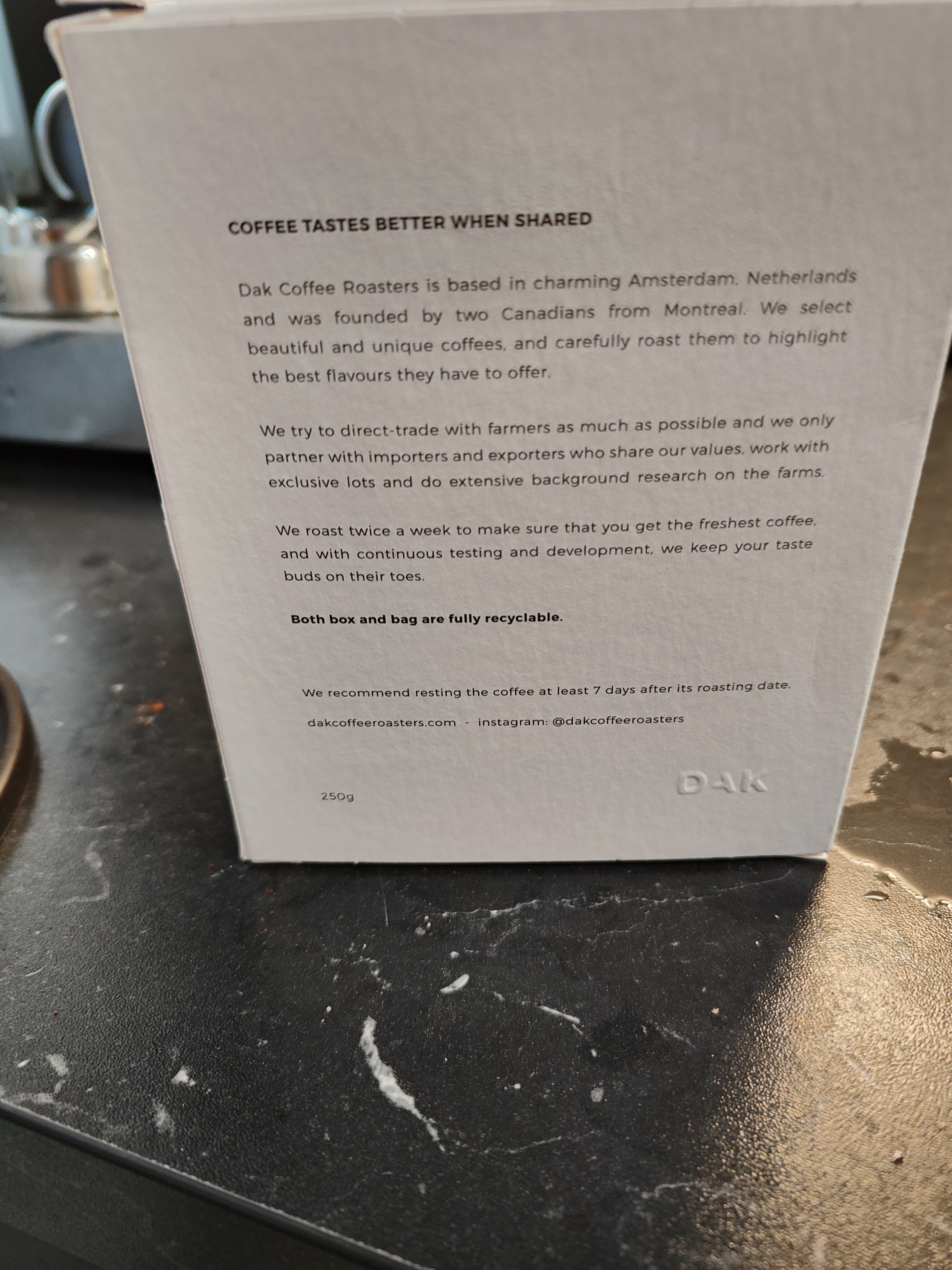 Ik heb er nu 1 in van DAK roasters uit Amsterdam. €57 per kilo gebrande boontjes.