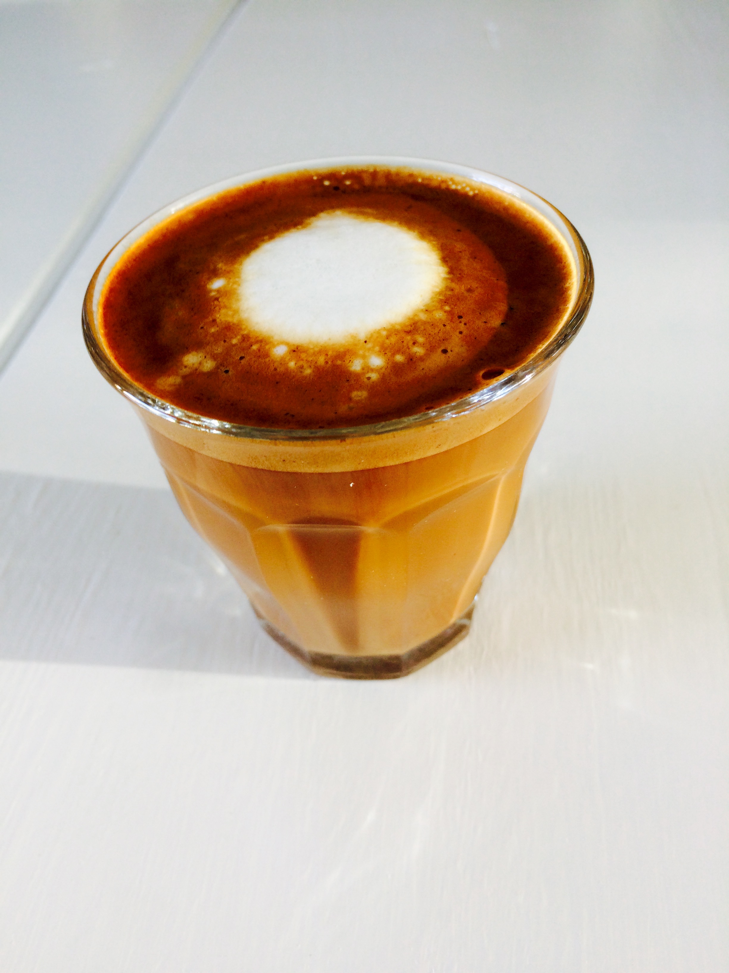 Een cortado is best apart vind ik zelf, te weinig melk om de espresso zoet te maken, maar het wolkje melk geeft nét wat andere smaken prijs die de espresso rijk is. Als een soort nuance, of een gordijntje met daarachter een gedimd gloeilampje... nét even wat smoother.