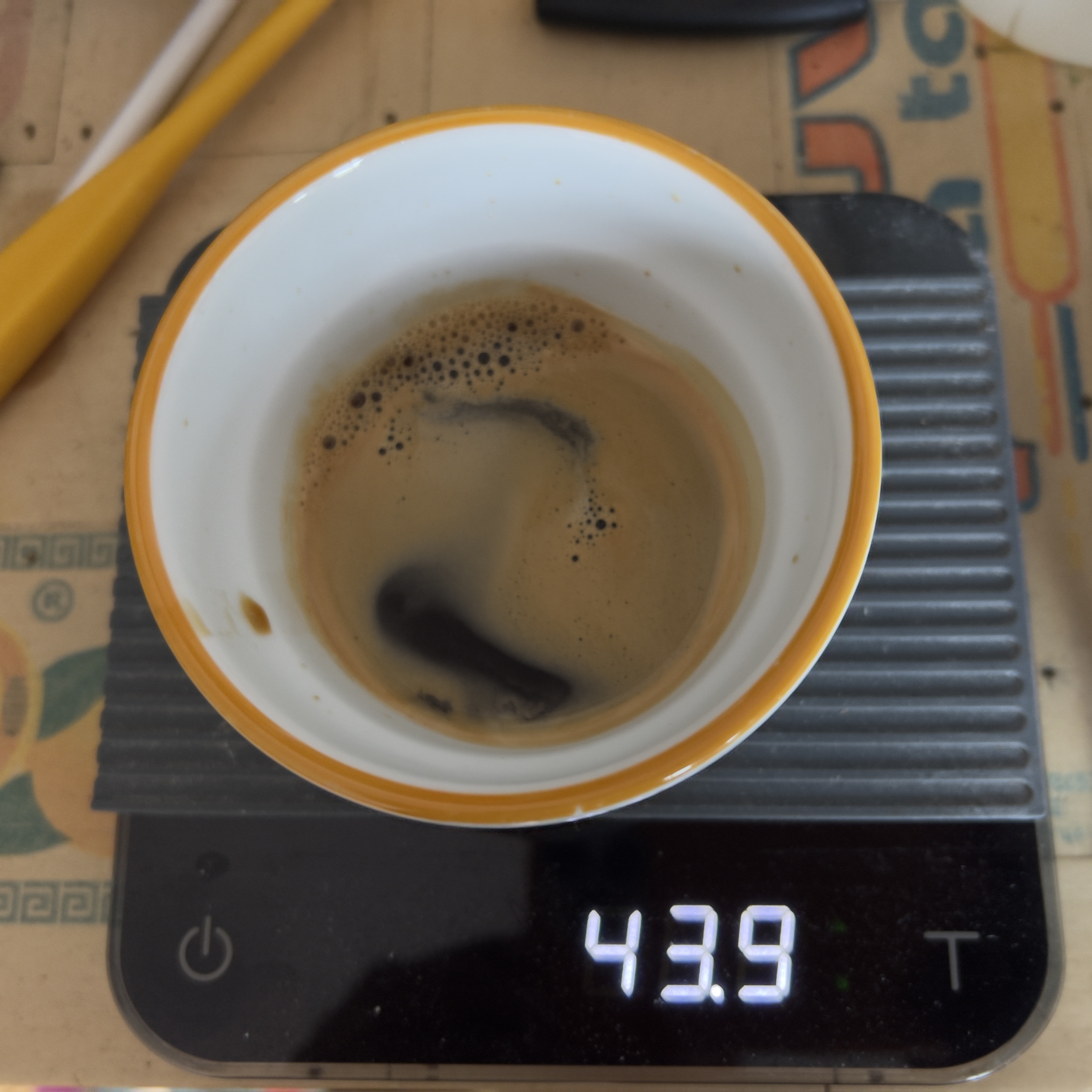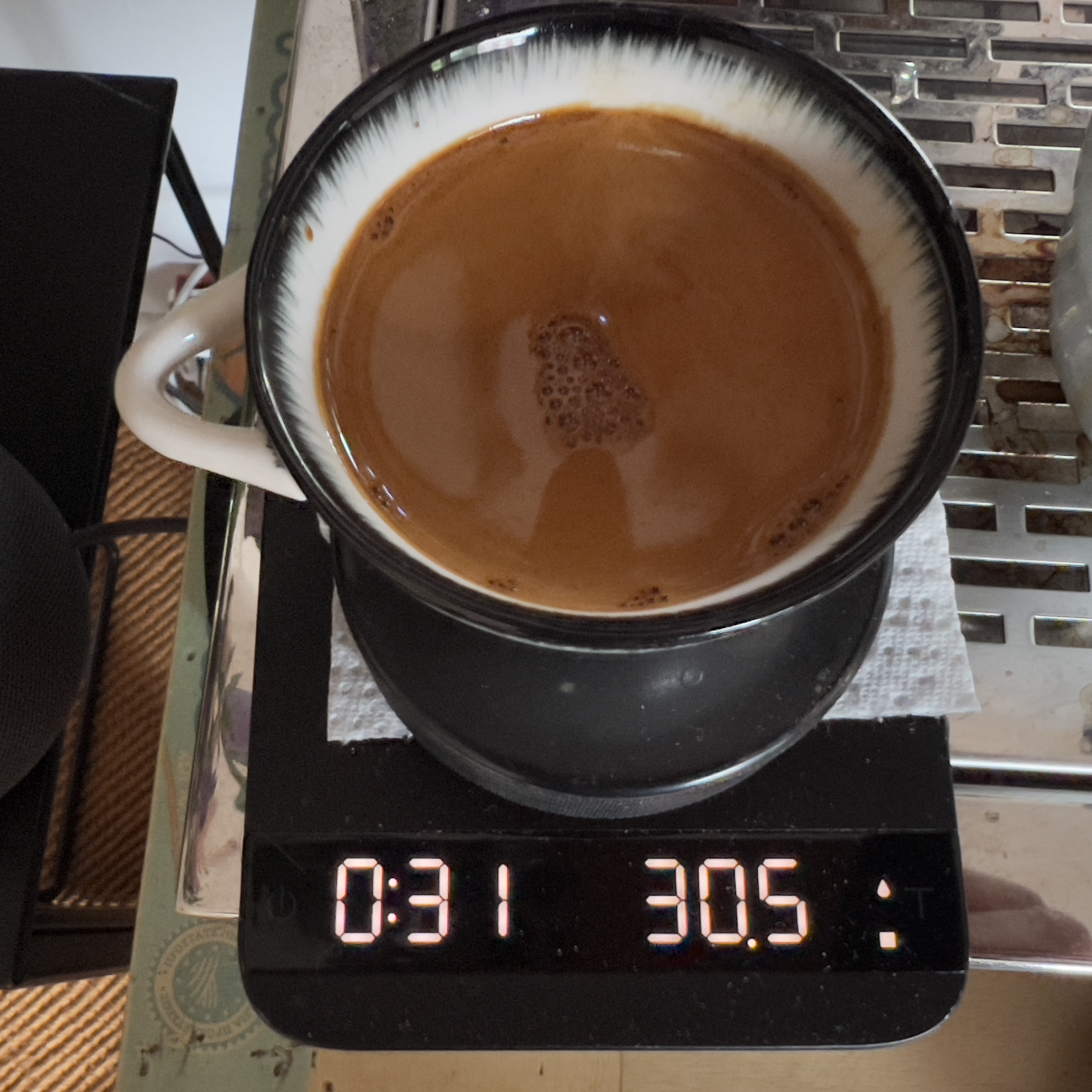 Ik snap het van die waterkolom, dat leek me al logisch, met de weegschaal er onder, bijna de gehele 'gang' van de hendel compleet op de laatste 5cm na zo ongeveer leverde 41gr op, de rest nu maar even in de driptray laten lopen.