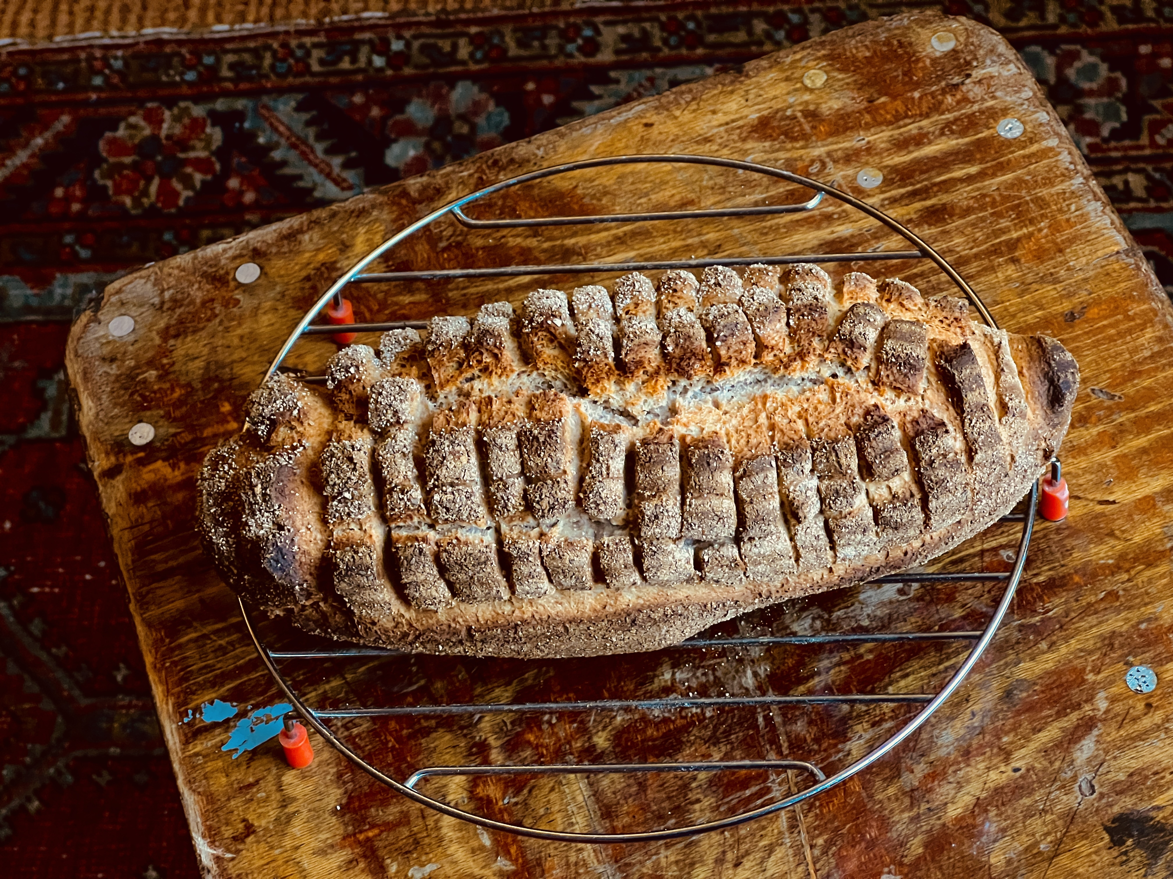 De tarwen die ik zelf maalde zijn op en ghek genoeg vind ik geen tarwen in de buurt maar wel volop roggen in een bio-winkel dus nu gebruik ik eigengemalen roggen en mooi wit meel van de Chinese toko.