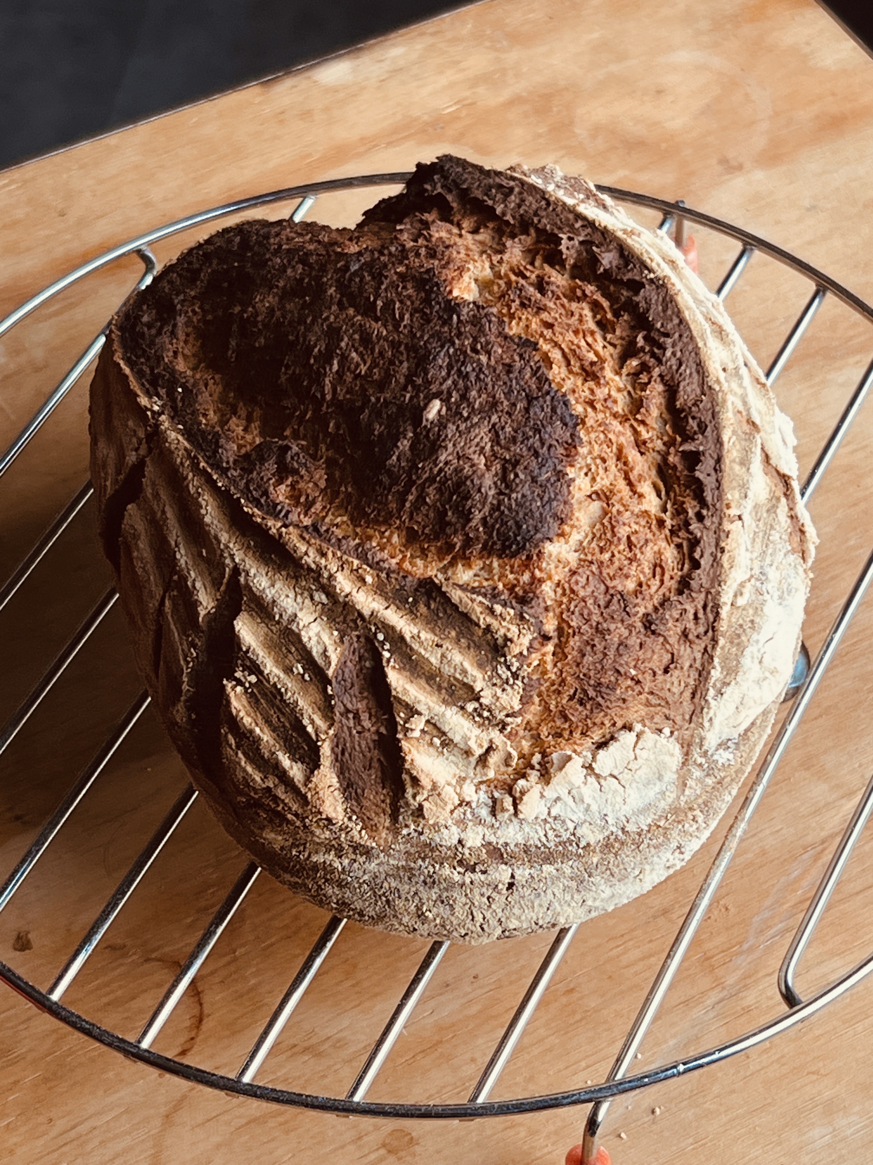 Nieuwe desem gestart, ik ga voor mijn zoontje 100% roggebrood bakken omdat hij net een blinde darm ontsteking achter de rug heeft en roggebrood ipv tarwebrood hem zou kunnen helpen te herstellen. Geen idee of deze claim legitiem is maar dan nog heb ik weer lekker brood kunnen bakken!