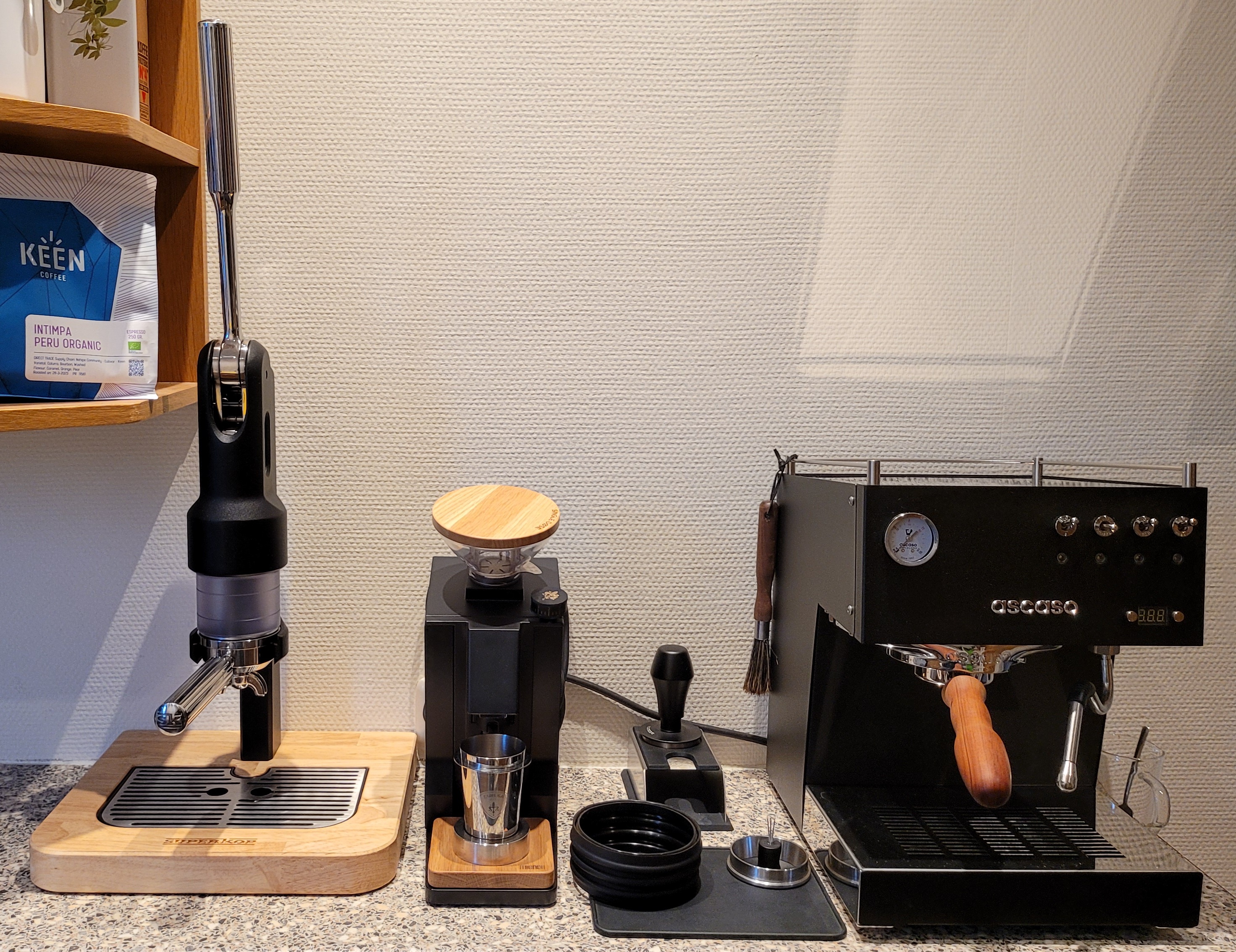 Nu gaat het uitstekend en is bijna elke espresso raak: crema, goed heet en lekker van smaak. De puck is keurig droog en vertoont geen sporen van channeling ed.
