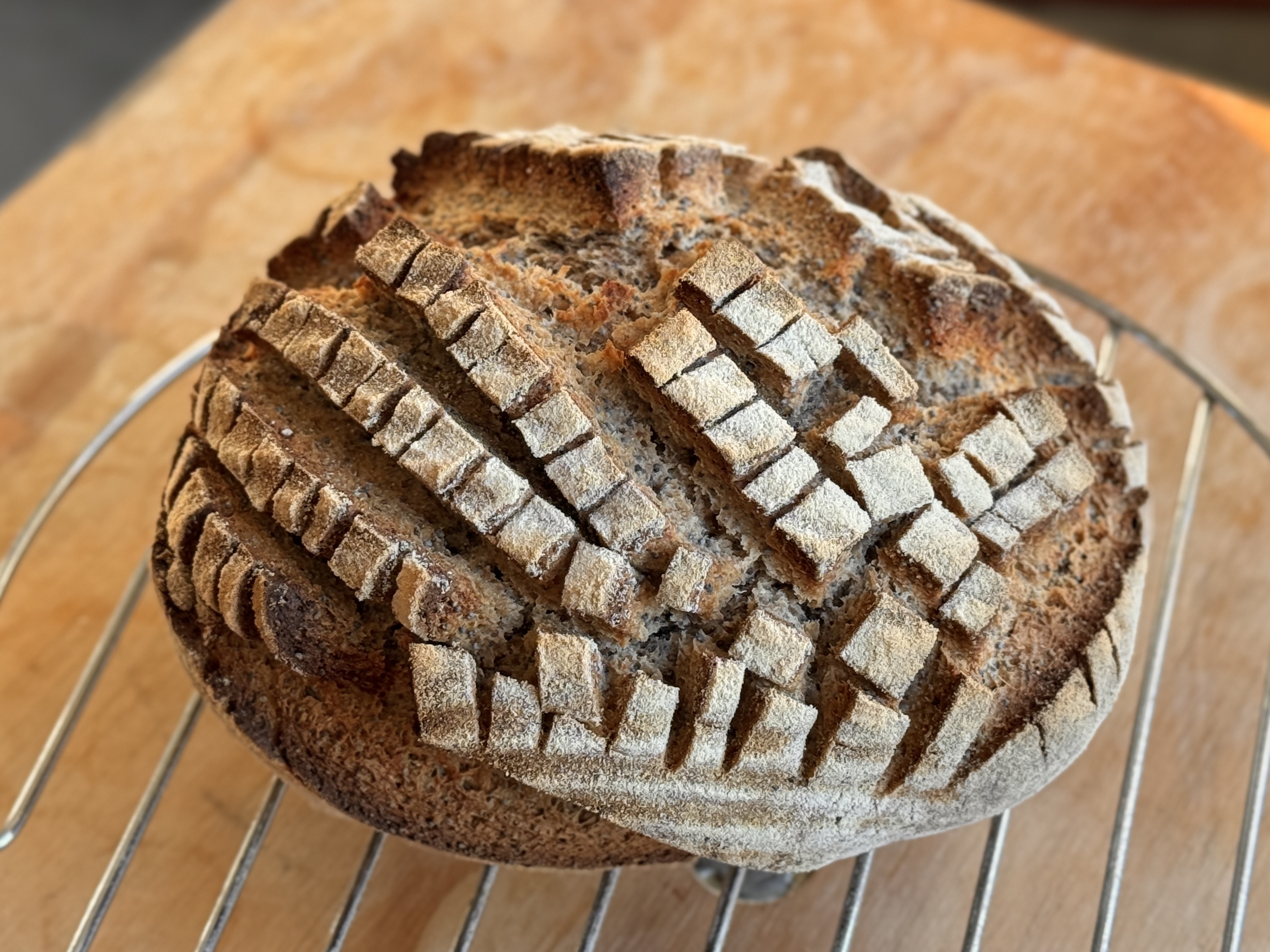 Desembrood op de cremalover manier, pleur maar bijmekaar brood op gevoel. Bloem van de Jumbo en zelf gemalen tarwe. 1 van de beste broden die ik heb gebakken vind ik.