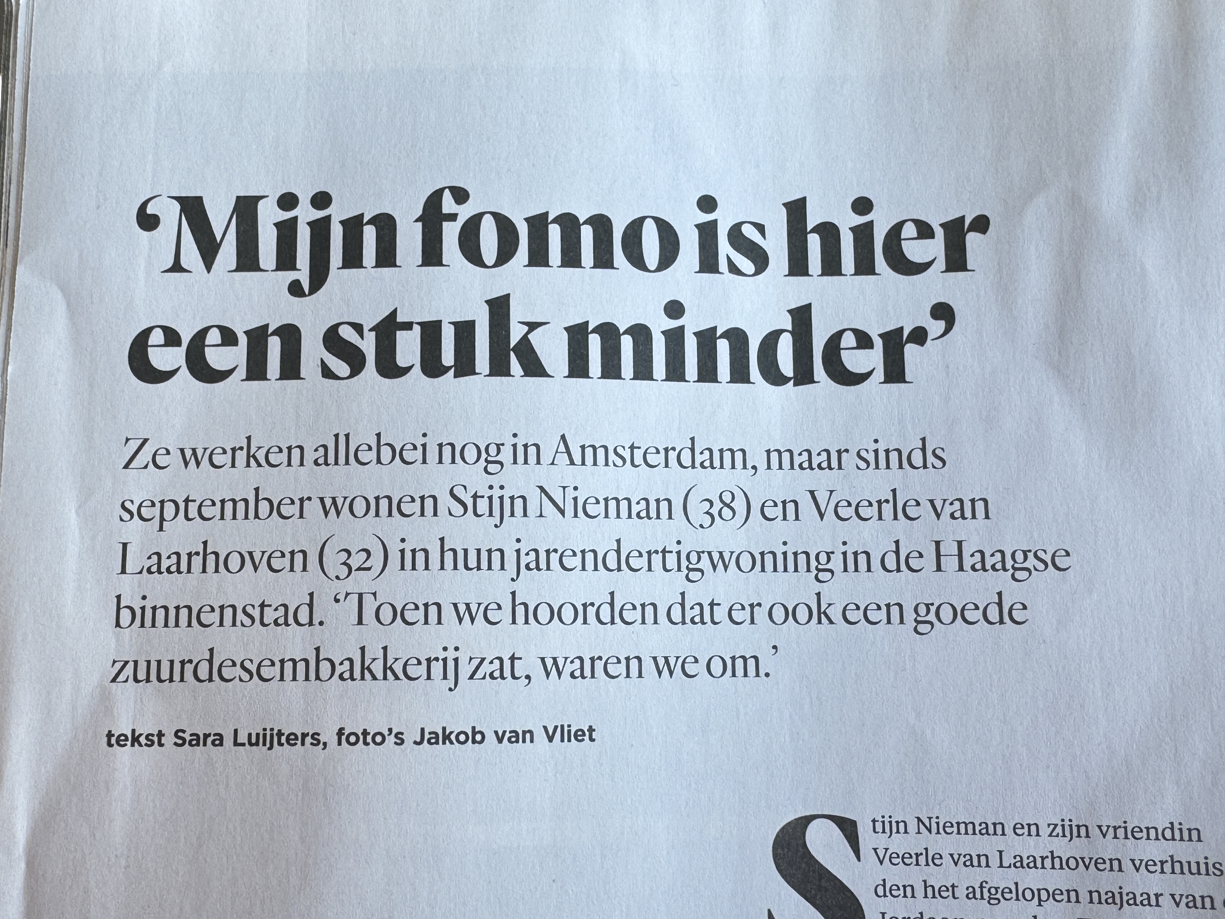 In De Volkskrant magazine groot interview met een neef van me maar ook veel over broodbakkers en zelfs over pizza.