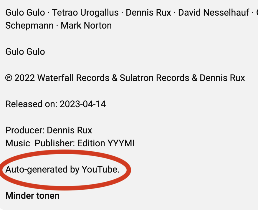 Bij de info staat "Auto-generated by YouTube." -- wat betekent dat? De muziek is toch deels door mensen gemaakt
