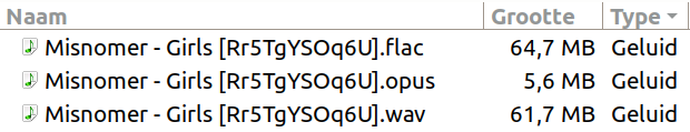 opus. Ook zie ik dat als het gedownload is de bestanden verwijzen naar hetzelfde bronbestand op YouTube. In dit geval