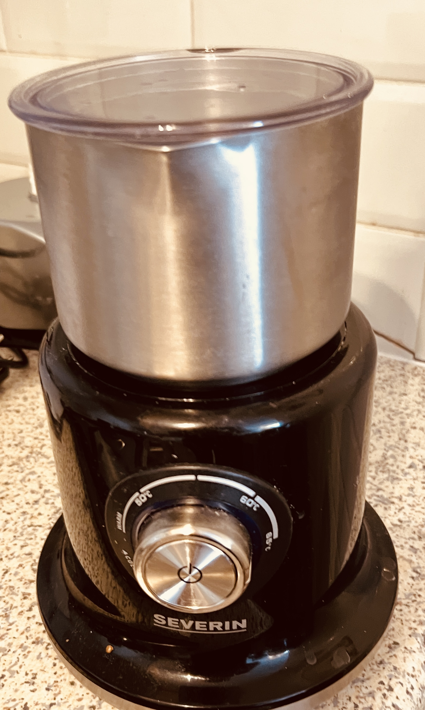 Voor de grap probeer ik wel een 'figuurtje' te leggen met het dikke melkschuim uit de elektrische opschuimer.