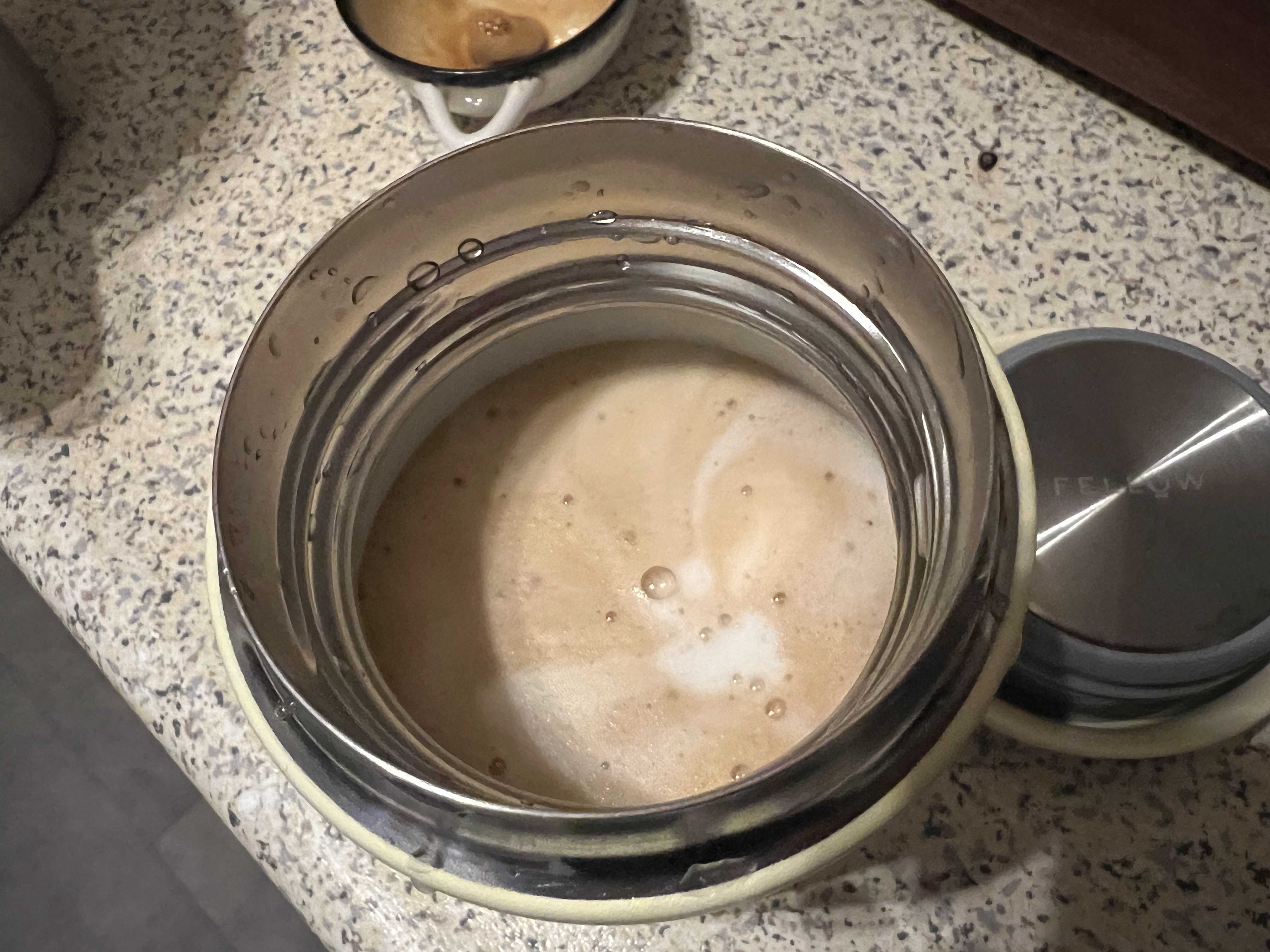 Ik zet er altijd mijn aeropress in (past precies). Maar als je dan de deksel erop doet, blijft het te warm om te drinken