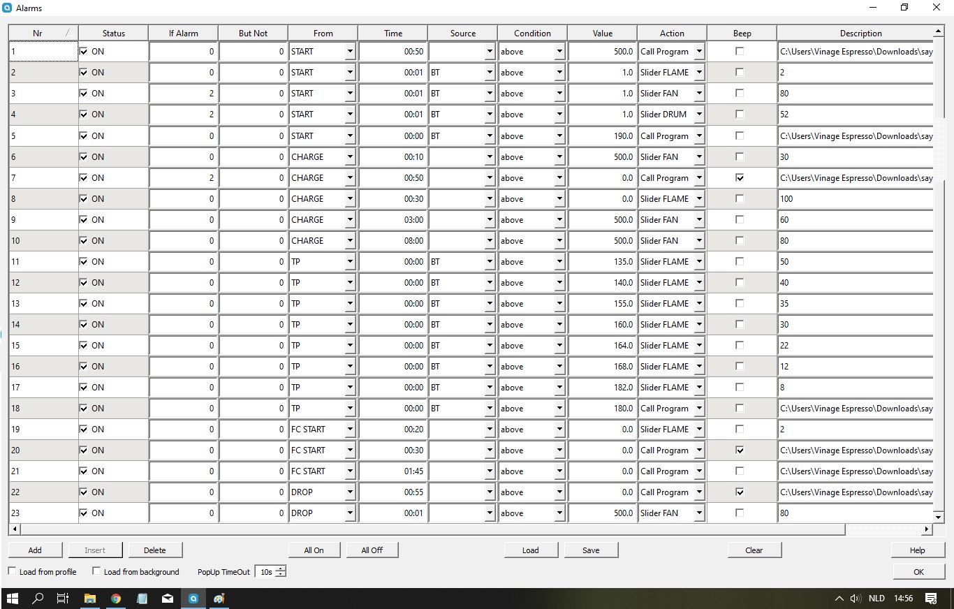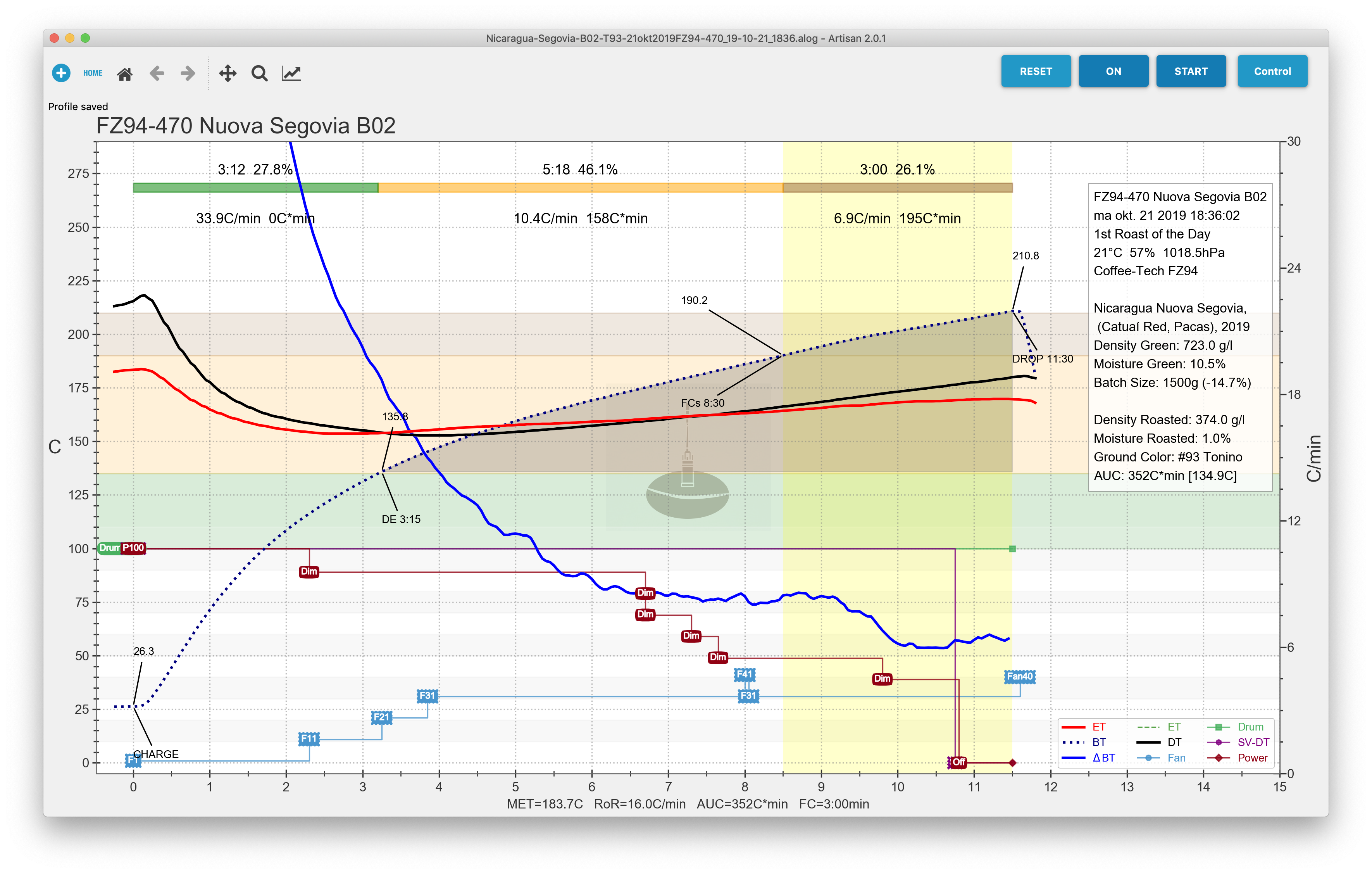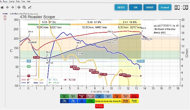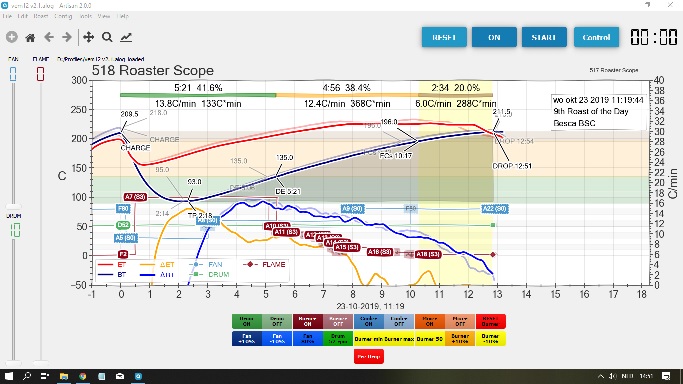 Dee ik voorheen vooral de controle van de branding door middel van de zeer effectieve luchtstroom, na een suggestie van Marko Luther gebruik ik nu een samenspel van de (traag reagerende) warmte-elementen en de (snel te wijzigen) luchtstroom.