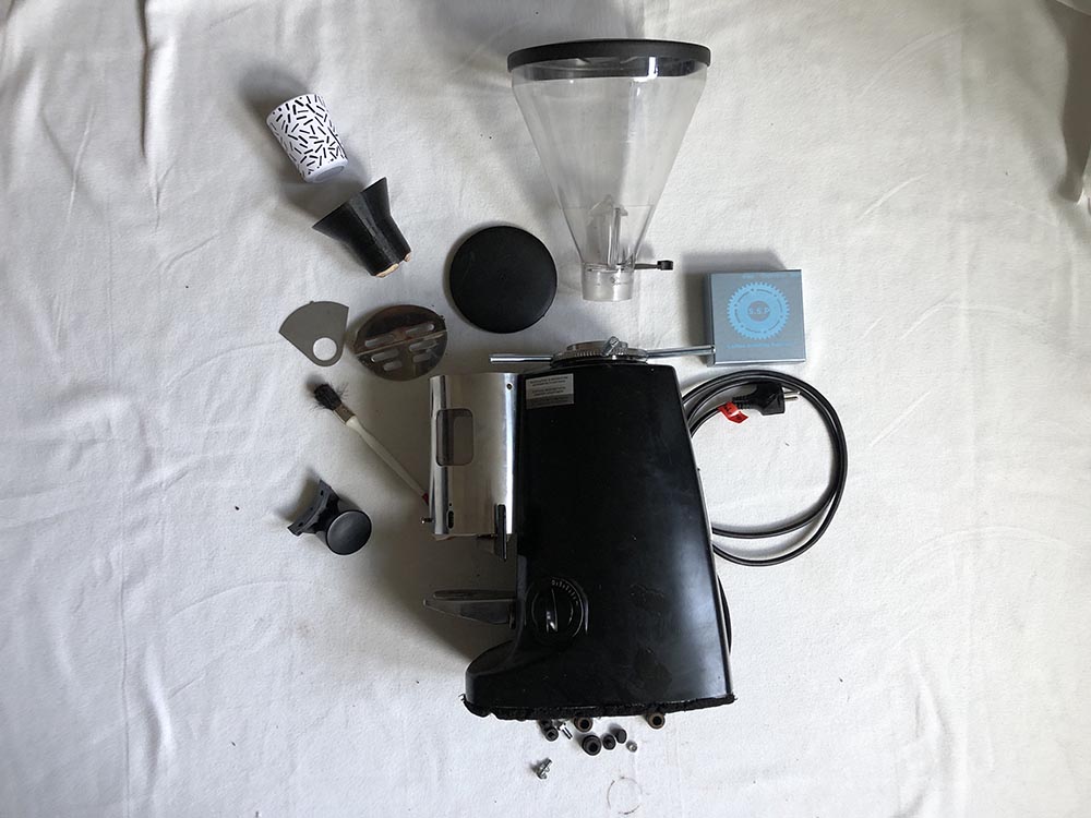 Single dose mod: De custom funnel die er op zit heb ik 3d laten printen en die past precies in de nek waardoor single dosing erg makkelijk gaat. Ook onderin de chute zit een stuk plastic dat het maalsel in het portafilter geleidt. Op de sweep zit een stuk velcrotape zodat ook de laatste korrels mee worden genomen. Je krijgt er ook een kwastje bij zodat het achtergebleven maalsel minimaal is.