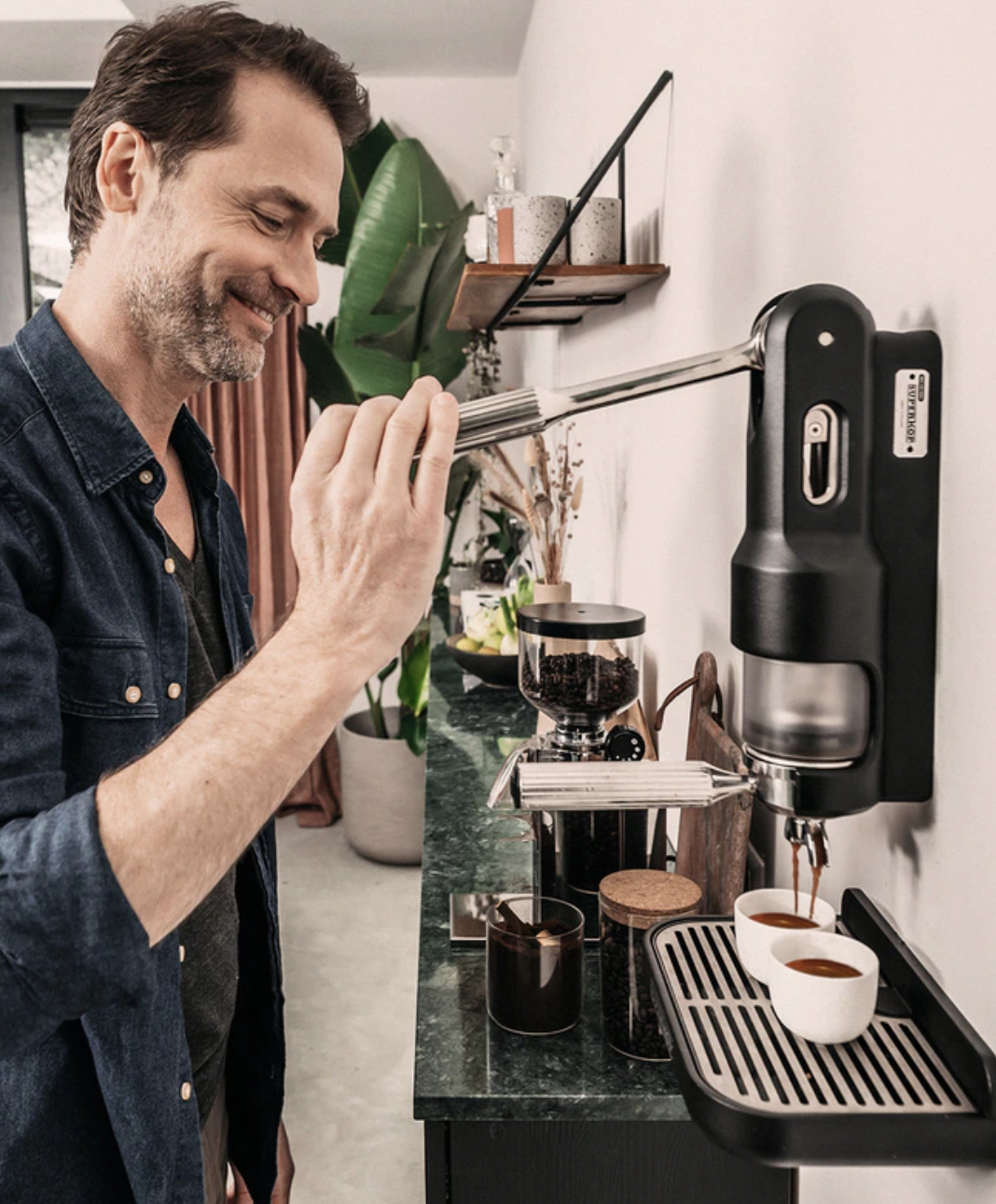 Wel een cool concept en super strak in je keuken. Lijkt ook wel simpel...alleen benieuwd naar de koffie die je eruit krijgt! Hoe zit dat met t pompen met andere levers dan?