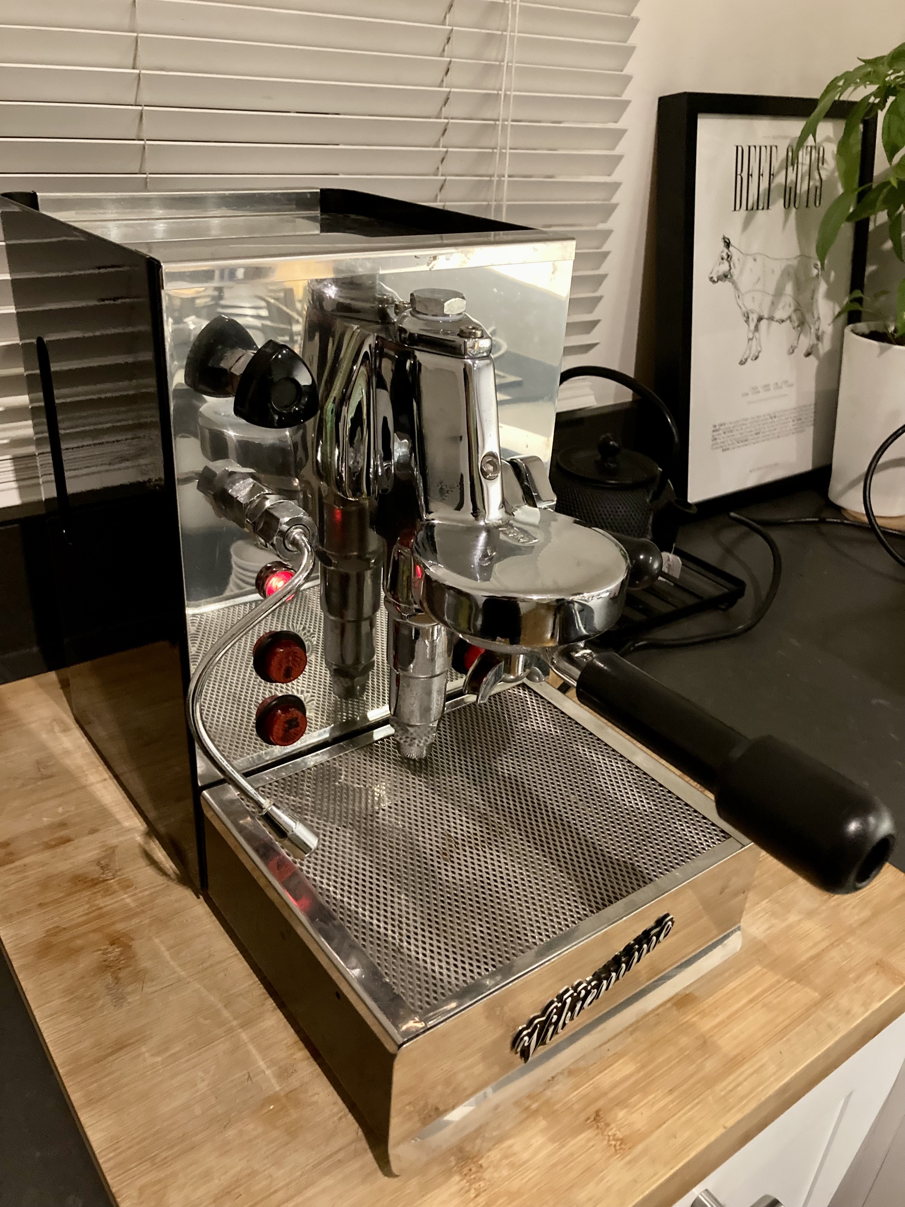 Ik ben nieuw op dit forum, dus zal me even voorstellen: ik ben Rob en -net als iedereen hier - houd ik erg van goede koffie. Ik heb een QuickMill 2835 waar ik zeer tevreden mee ben. Maar ik wilde graag een upgrade naar een machine met E61 zetgroep, vandaar dat ik een Vibiemme Domobar heb aangeschaft. Die heb ik afgelopen maand helemaal laten opknappen. Maar in de praktijk is de Quickmill handiger. Sneller warm, eenvoudiger te bedienen. Dus, de Vibiemme Domobar gaat weg. Dit is er allemaal gebeurd: