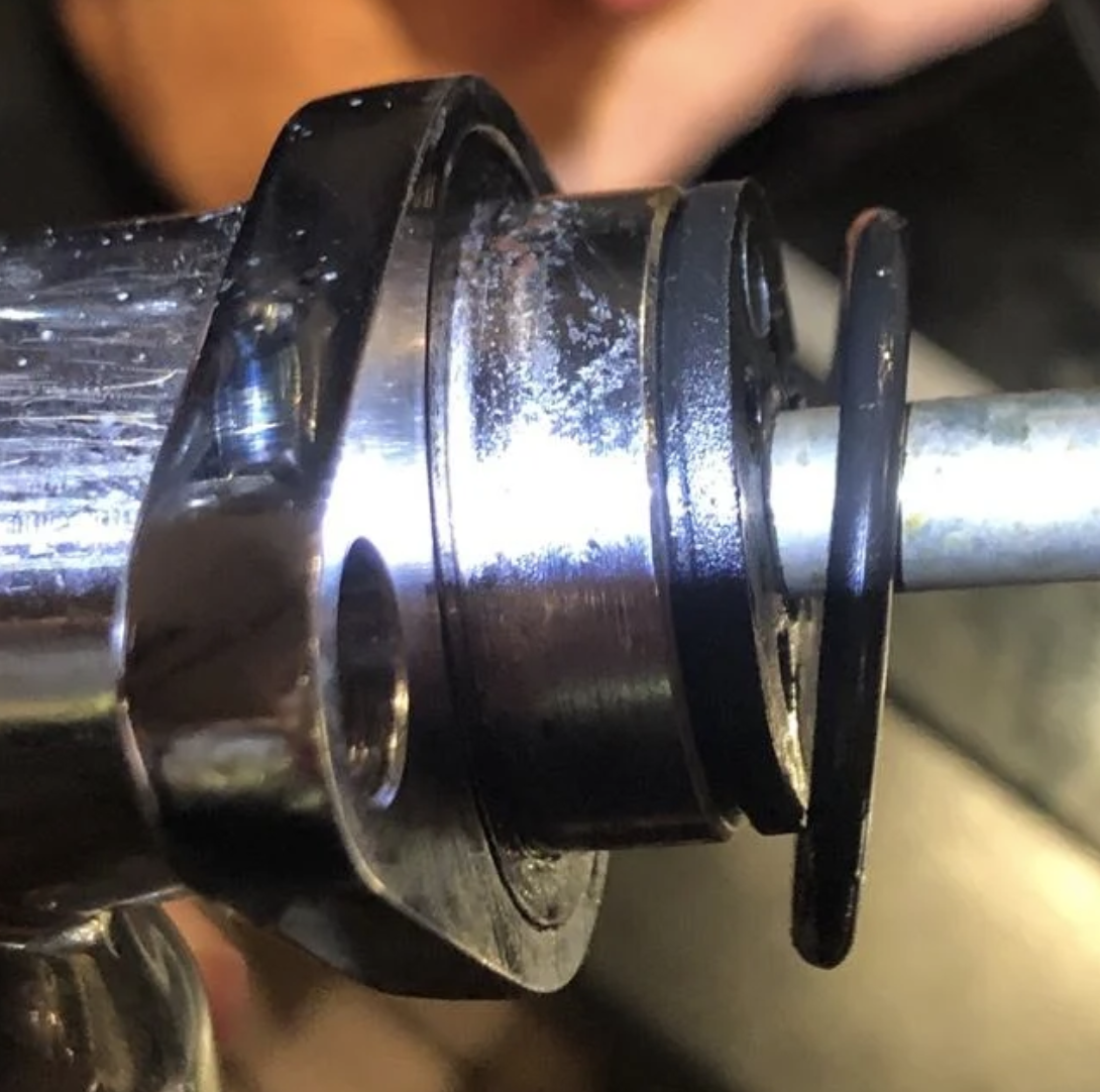 Toen ik probeerde een shot te trekken, ging de gasket tussen boiler en grouphead los (zie foto), alle stoom vloog eruit.