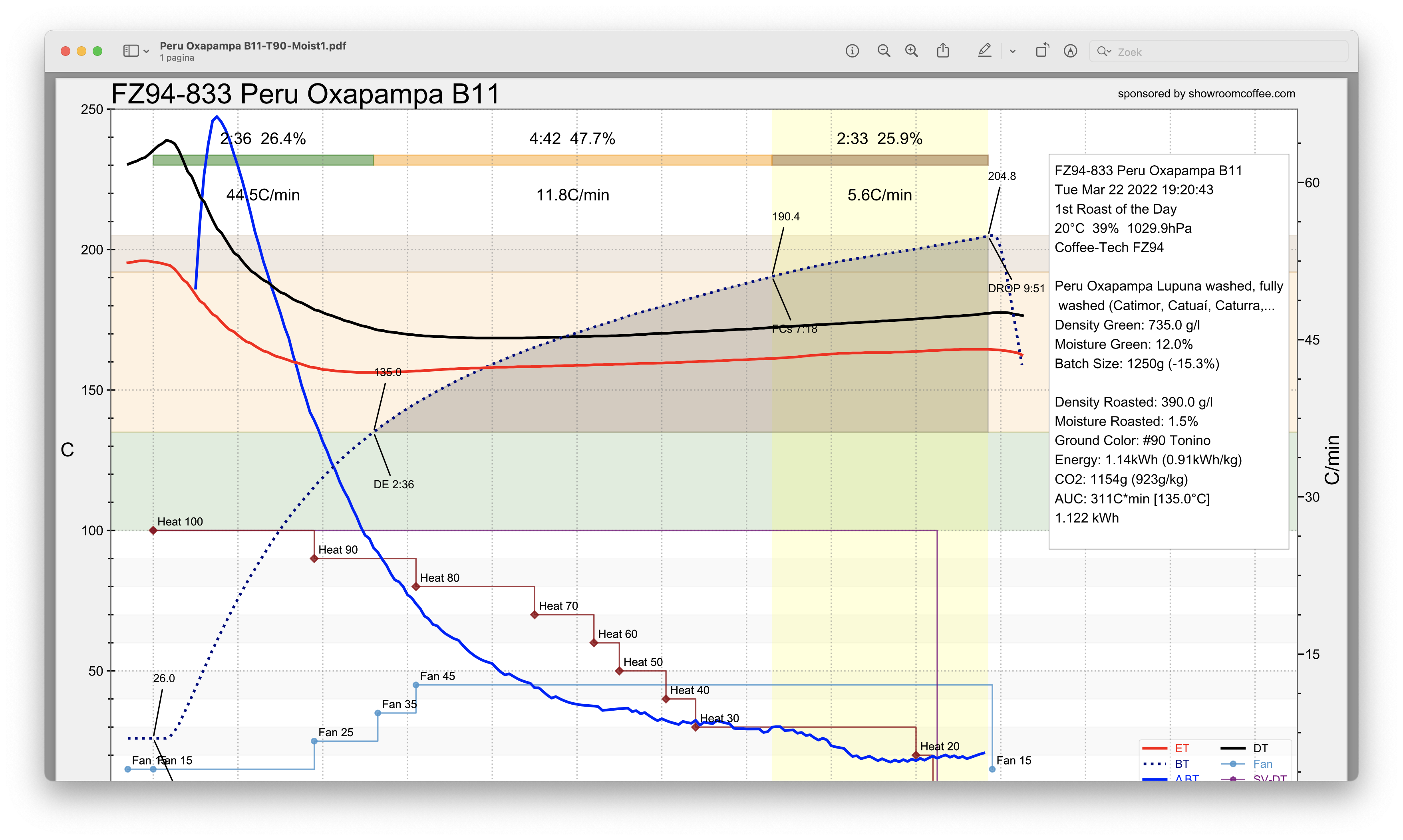 Veel gegevens ontbreken, zoals een 'legenda' waarop ik kan zien welke lijn welke probe weergeeft, BT of ET.