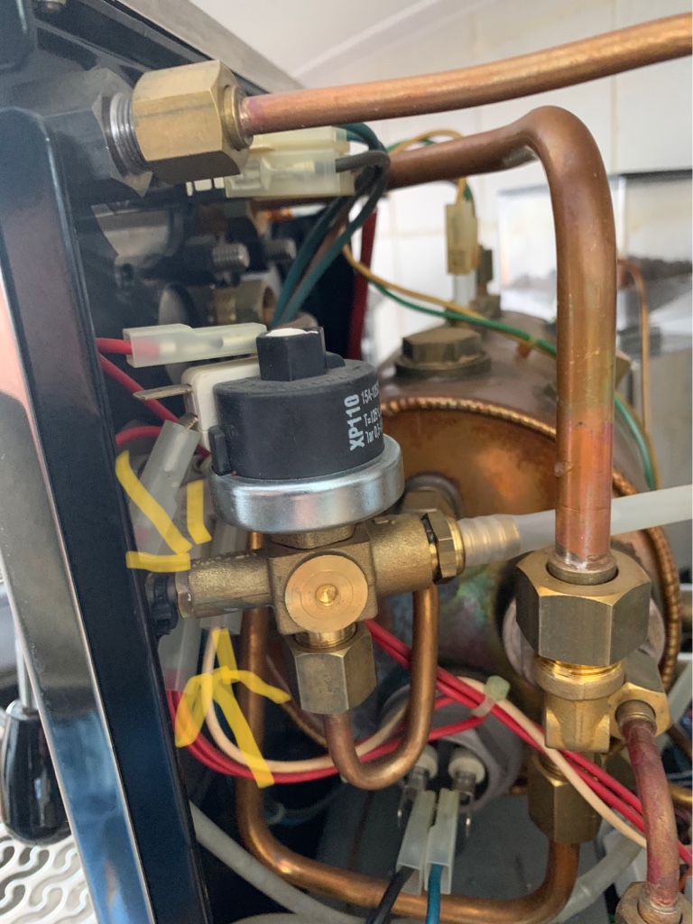 Heb de behuizing van de espresso machine losgehaald en de slangetjes na gezien. Deze komt uit op een y stuk. Deze los gehaald en uit eindelijk komt de stoom van de Pressostaat incl. vacuum- en overdrukventiel.