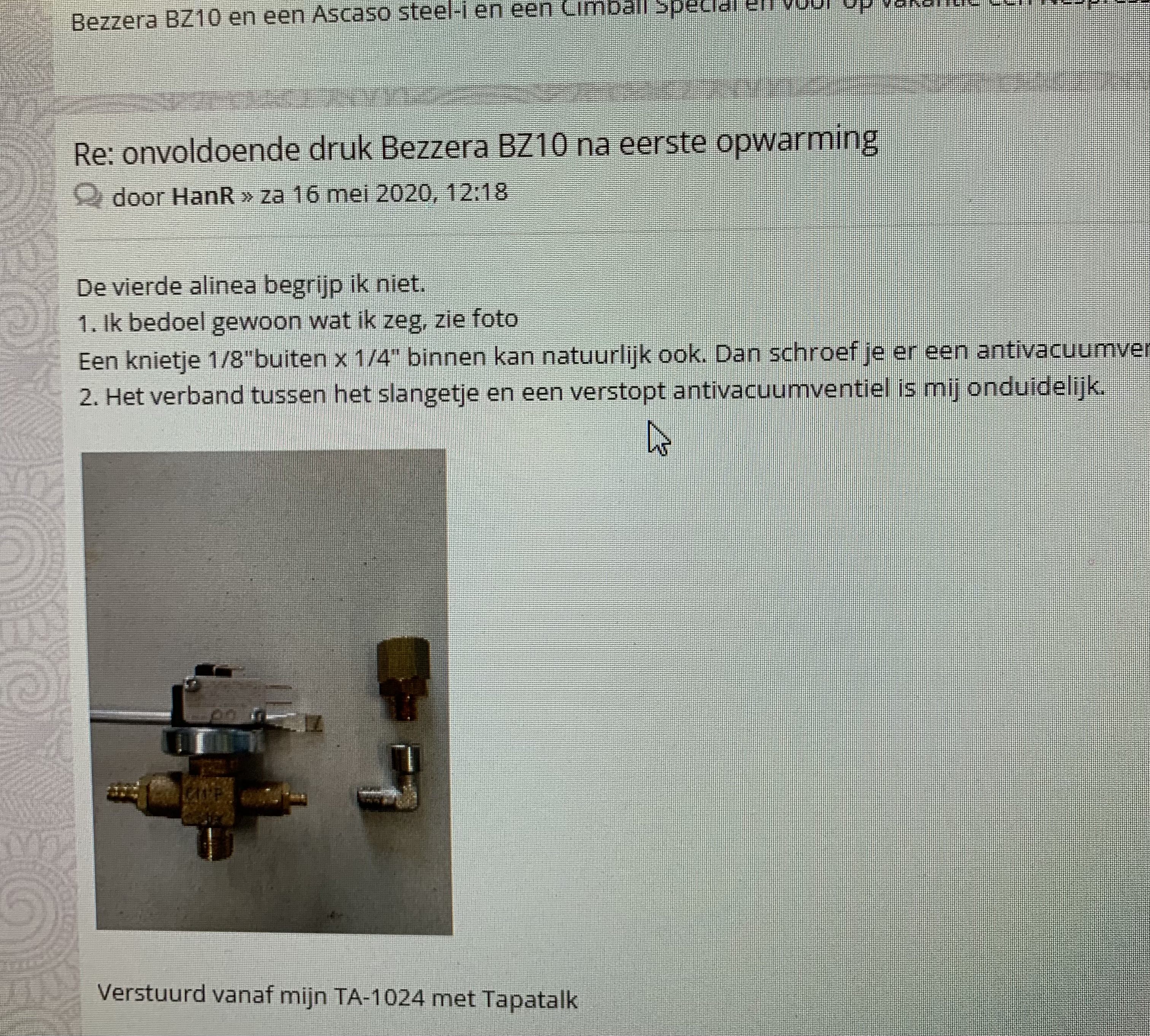 En natuurlijk heb ik ondertussen een Vacuumventiel boiler 1/4 met slangaansluiting besteld..