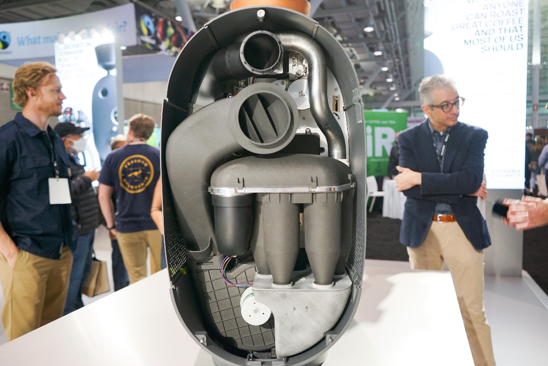 Het uitblijven van een trier op zo'n kleine brander vind ik toch ook vreemd. Naast dat baristi graag aan knopjes en hendeltjes zitten met veel flair, ruiken branders graag aan de trier om indruk te maken op onwetende.
