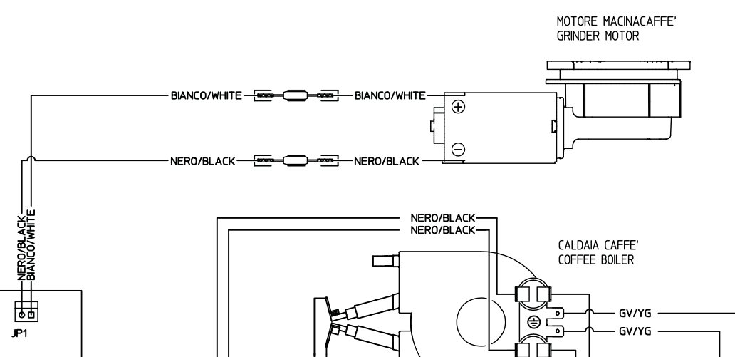 Overigens kom ik in het schema (pagina 65) geen draadje voor de pulsteller tegen en zitten er maar twee draden aan de grinder: .. Die pulsen zullen wel software zijn..