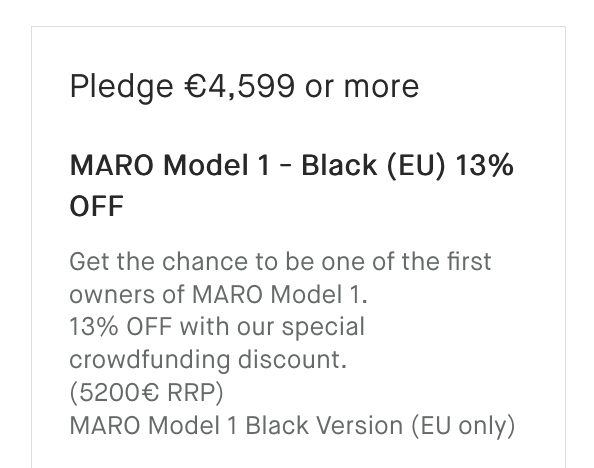 Inmiddels kan je hem pre-orderen voor 4000 euro: https://maro.market/en/products/maro-model-1