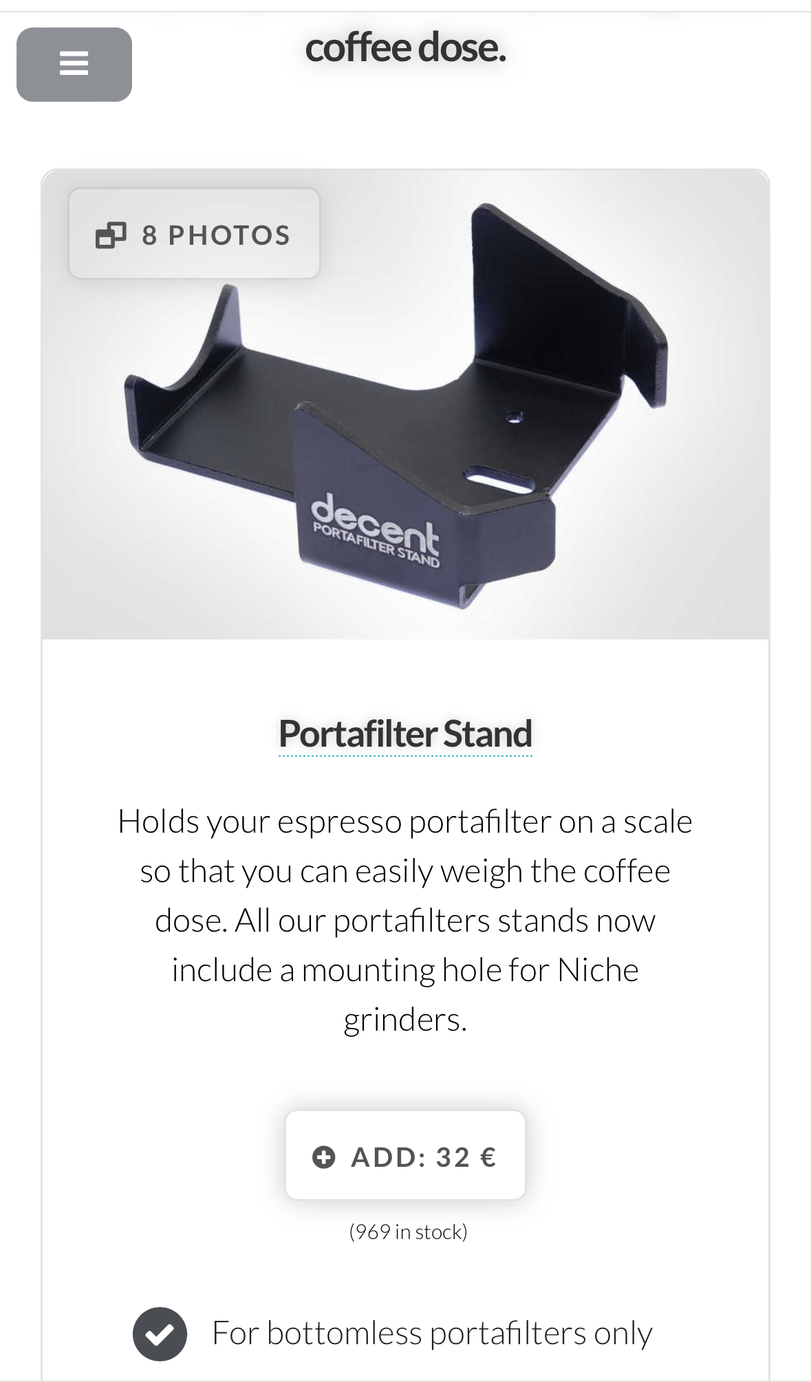 Deel 1: De Decent Niche Zero Bottomless Portafilter Stand.