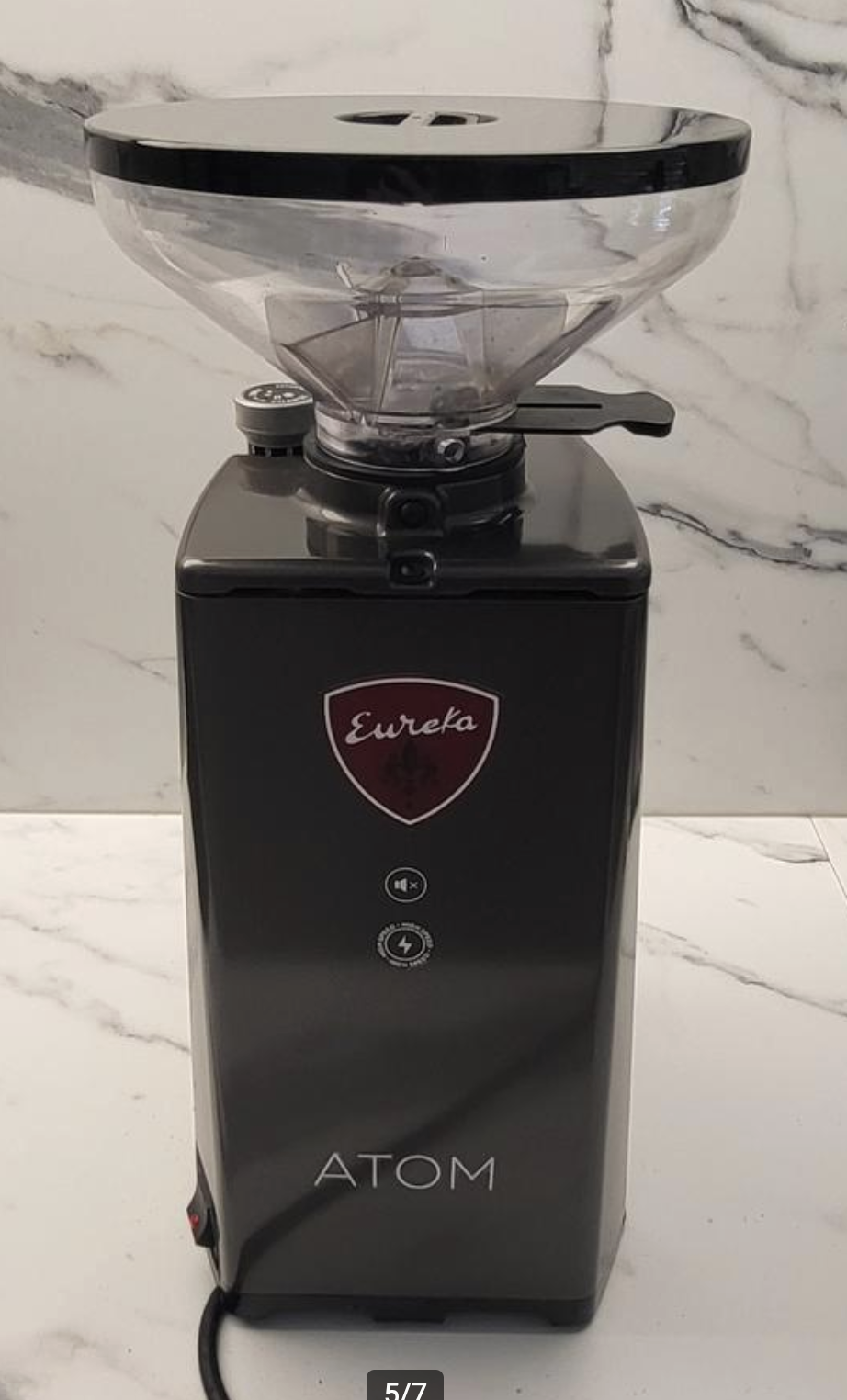 Te Koop, weinig gebruikte (nog geen 2000 malingen) Eureka Atom Specialty 65 Koffiemolen.