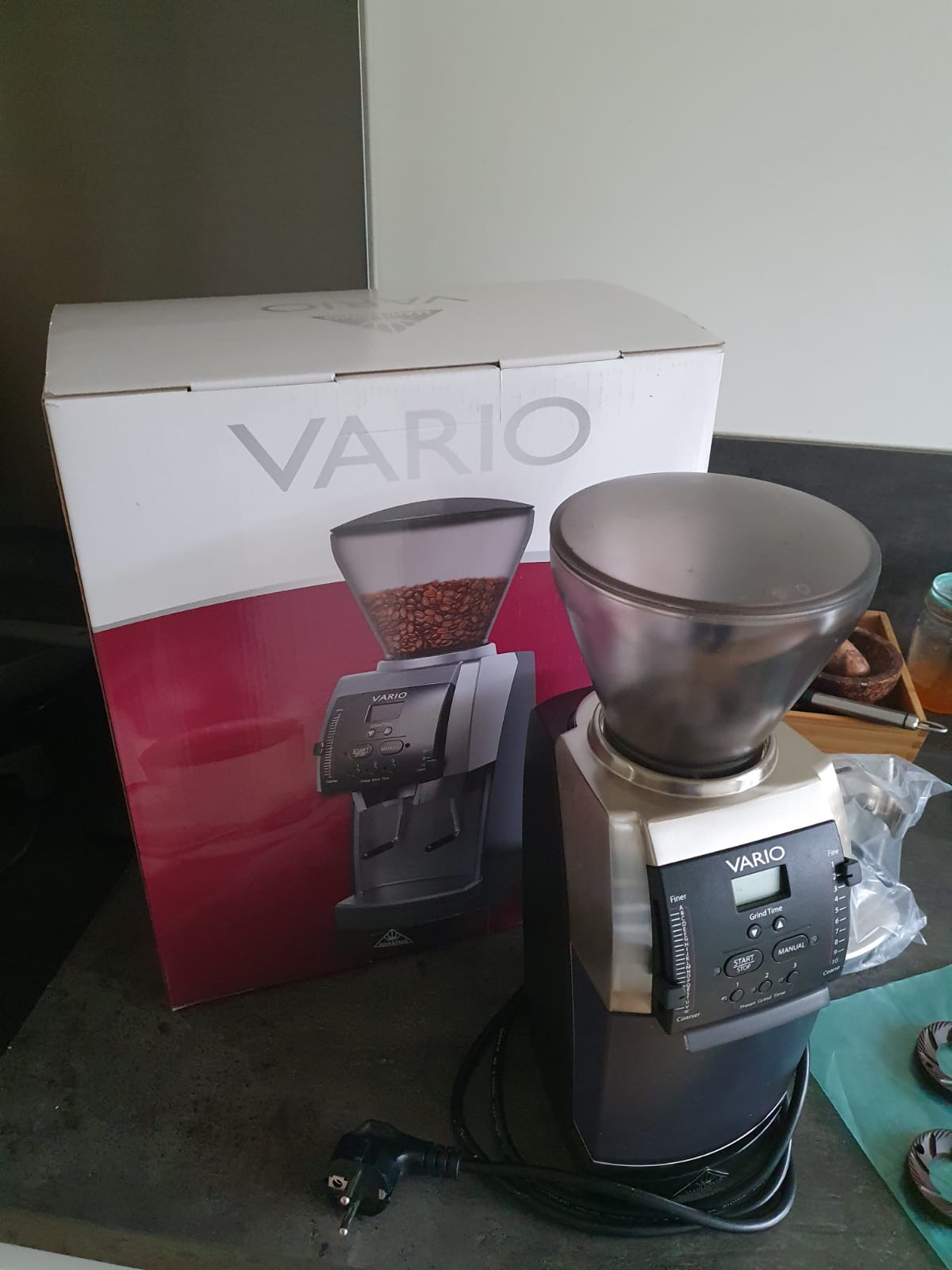 Iemand interesse in een Mahlkonig Vario? Betreft het latere model dus met de metalen pulley en metalen PF houder. De maler heeft een productiedatum van 12/2016. Doos is aanwezig. Heb de 'flap mod' gedaan en betere shims geplaatst op de levers. Het ledje van preset 1 brandt niet, die van 2 en 3 en manual en start/stop wel. Timer van preset 1 werkt wel gewoon.