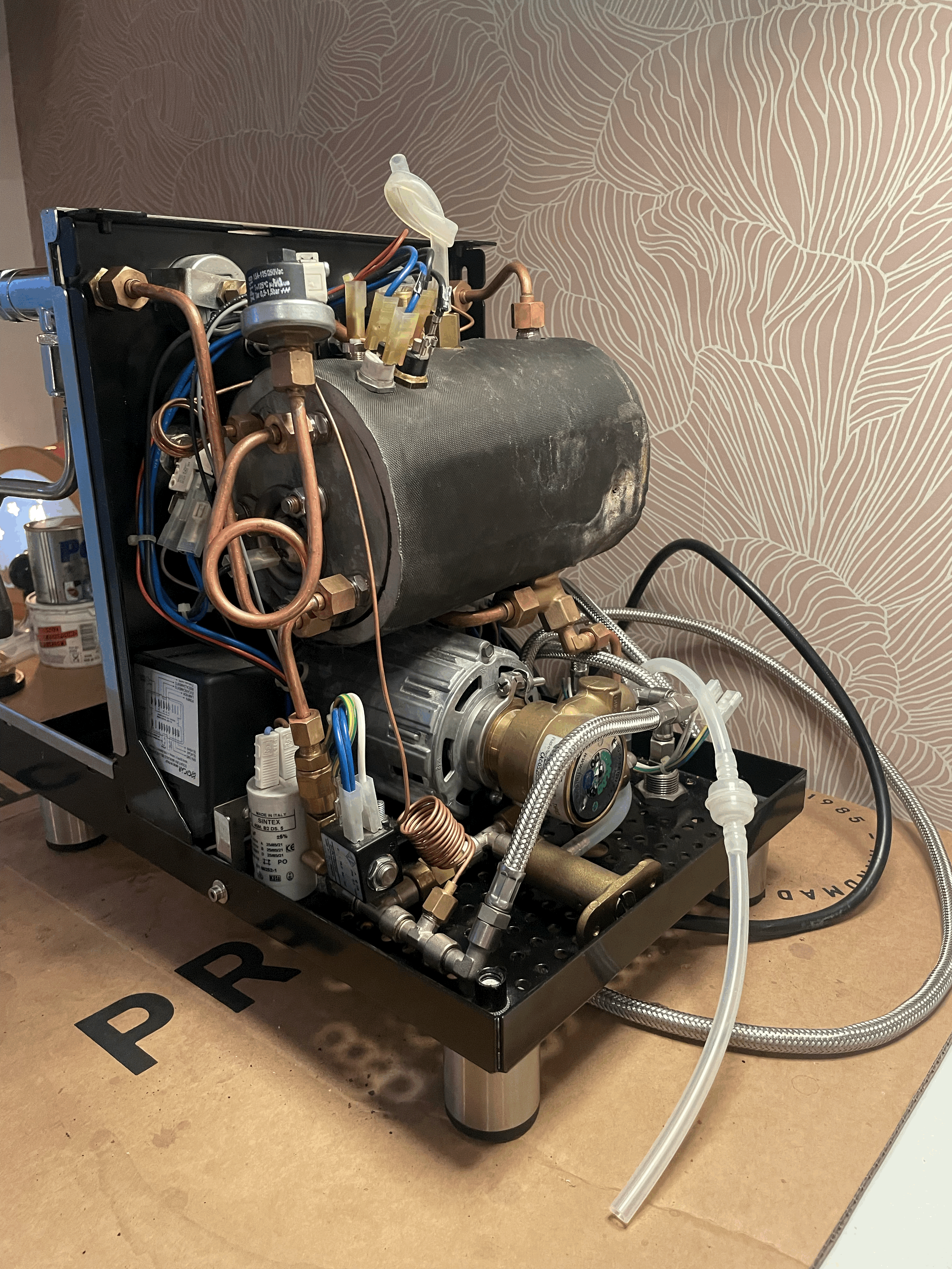 Ik heb de boiler los gehad en samen met alle koperen leidingen ontkalkt, de boiler voorzien van nieuw overdrukventiel, level sensor, vacuumventiel, pakking verwarmingselement. De zetgroep voorzien van nieuwe (bewegende)onderdelen,Push kraan heb ik uit elkaar gehaald en schoon gemaakt, onderdelen leken er nog goed uit te zien.