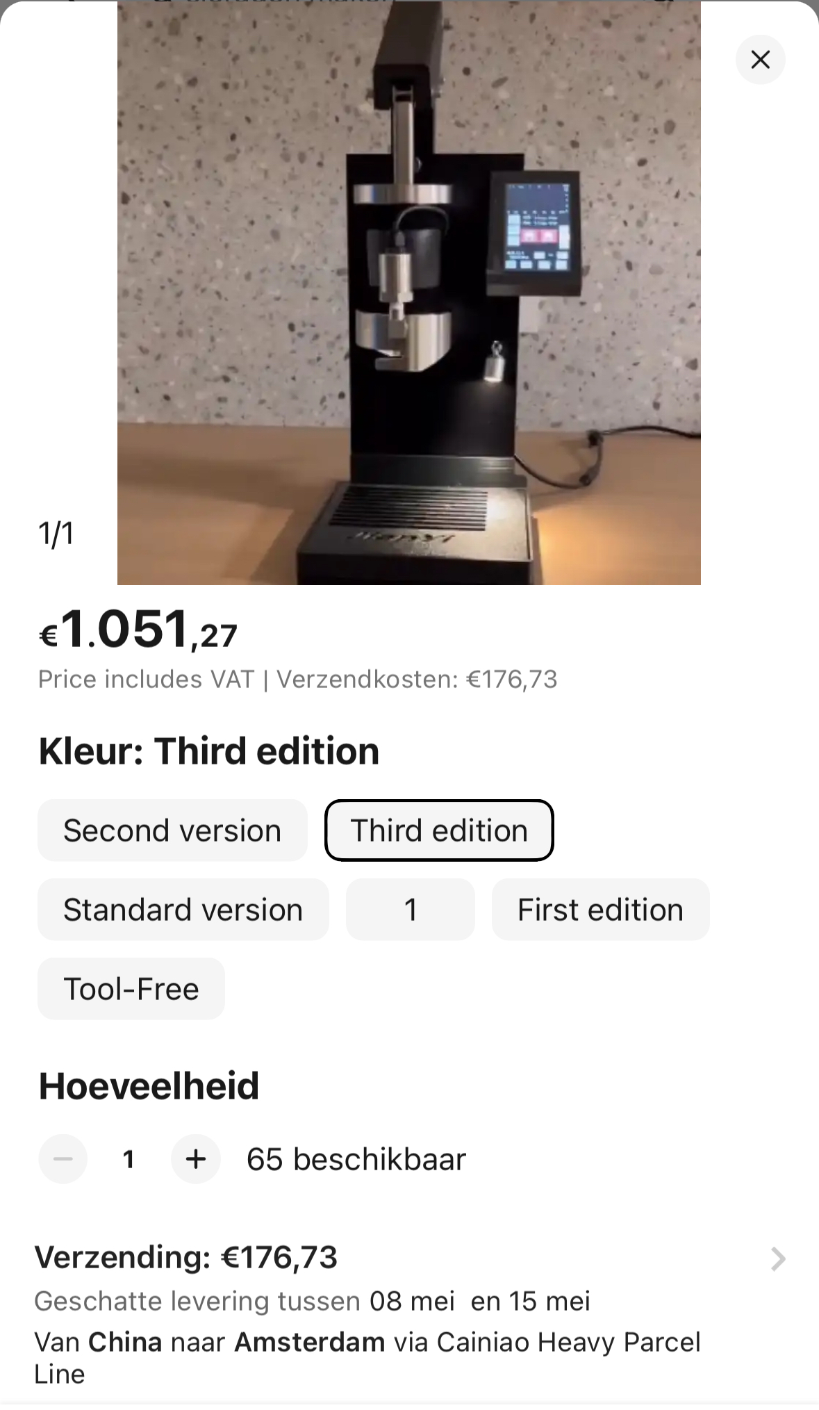 3Ik heb hem al gevonden. Inderdaad uit China en de prijs daar is zo'n 235 dollar.