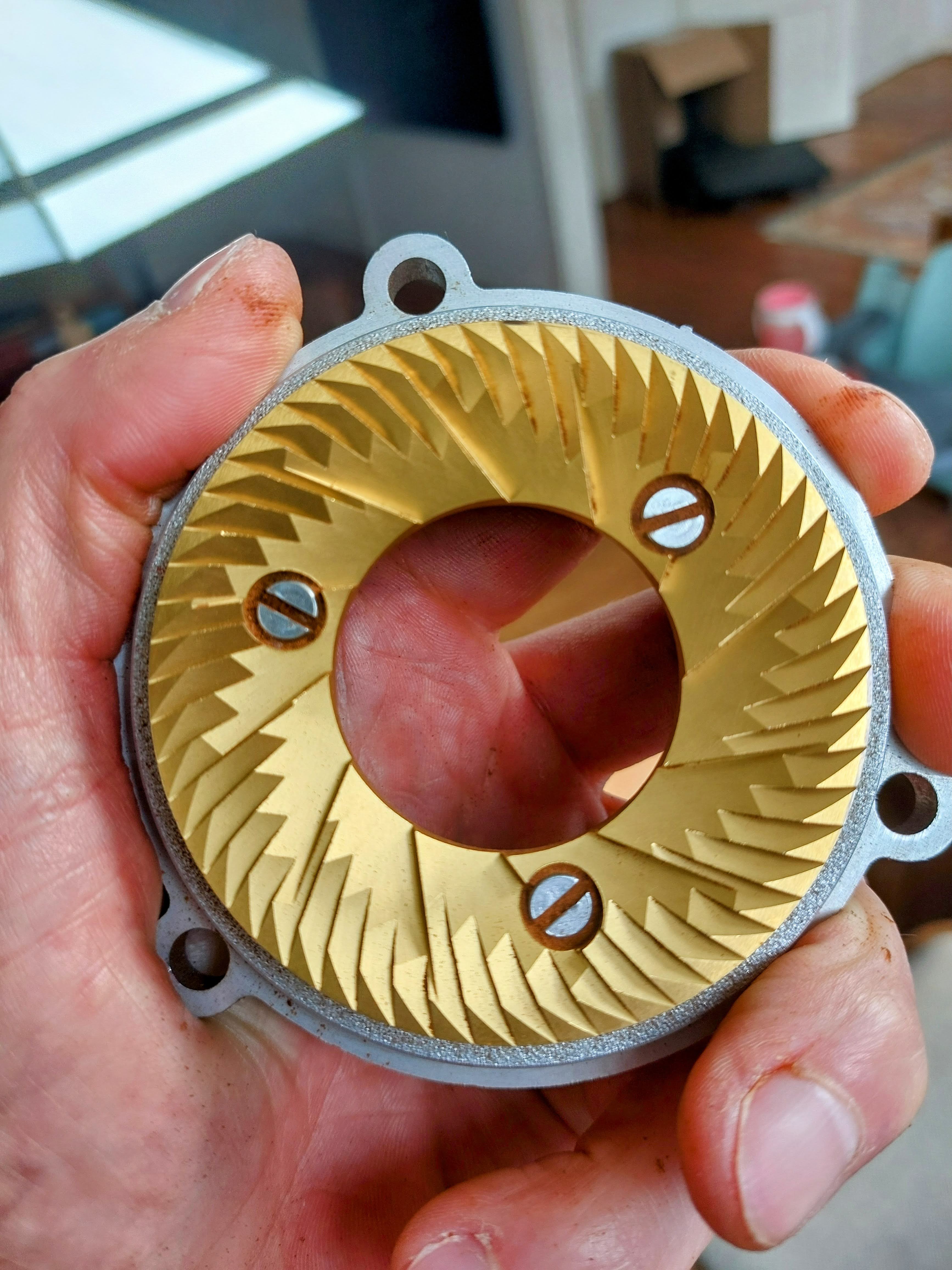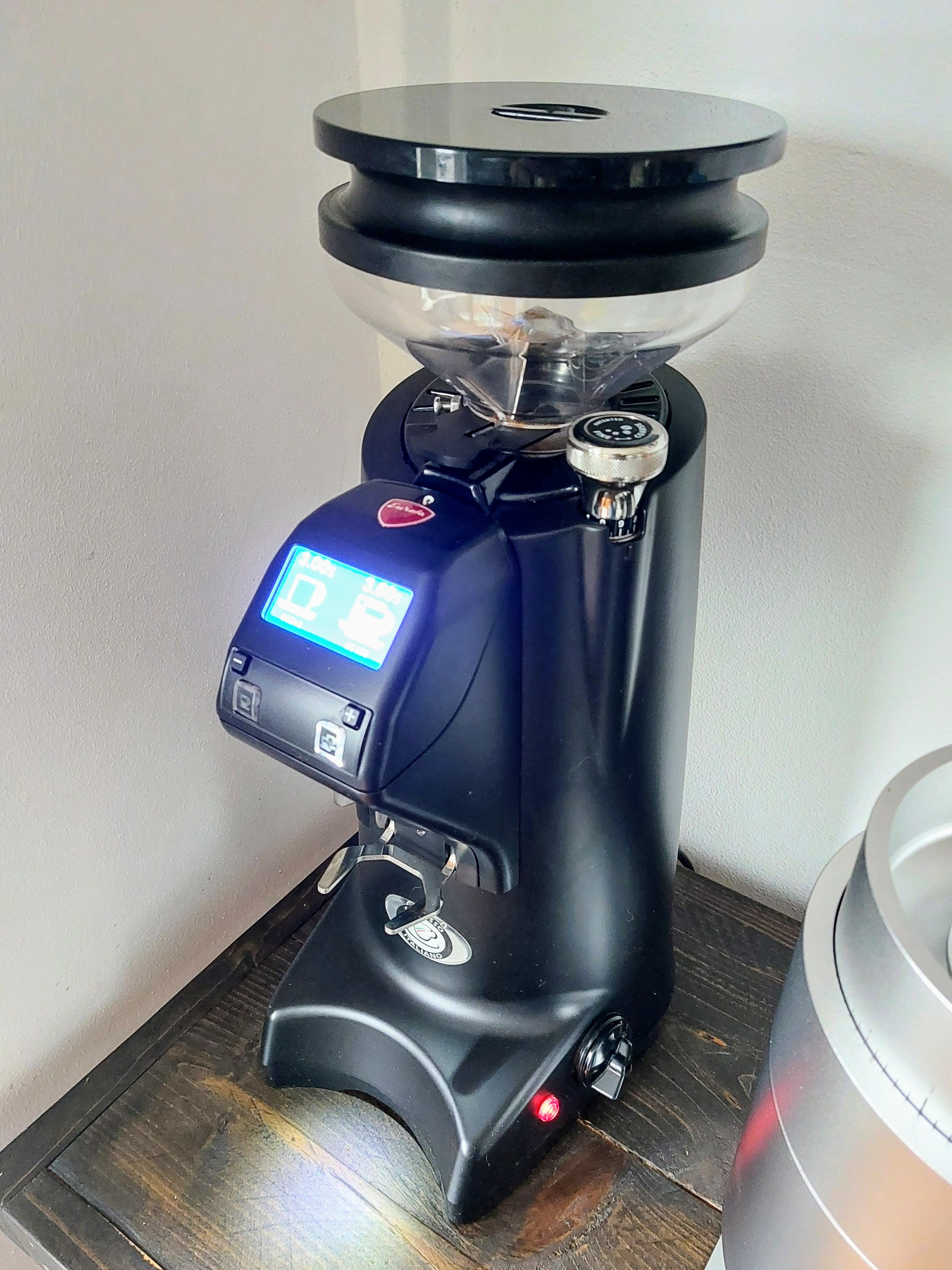 Wegens aanschaf van een nog grotere maler, mag deze weg, de on-demand (timer) versie van de Eureka Olympus. Heb hem december 2019 nieuw aangeschaft bij Elektro's in Italië. Denk dat hij max. 60 kg aan bonen gezien heeft. Heeft de TiN coated Mythos schijven, en de kleine hopper met blaasbalg. De chute heb ik van binnen afgedicht met een rubber omhulsel, zodat je niet het hele binnenwerk vol met maalsel blaast als je de blaasbalg gebruikt. Hij blijft dus lekker schoon van binnen.