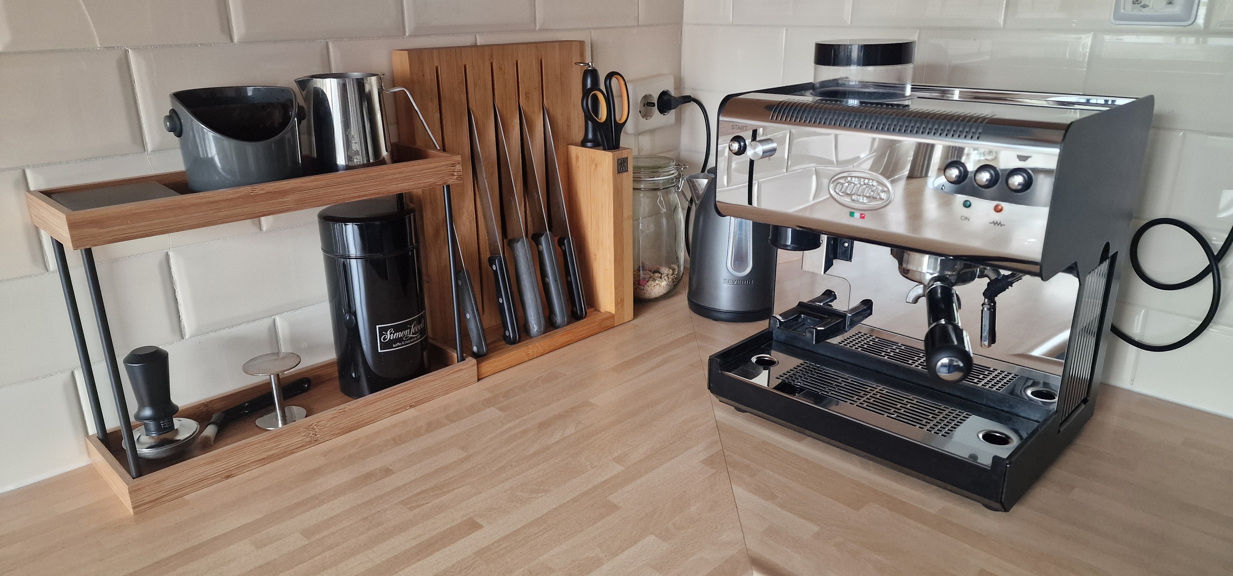 Machine voor mijn vrouw: QuickMill Aquaviva = 2820 & een QM3000. Werkruimte: Rancilio Silvia PdG V2 en La Pavoni Europiccola.